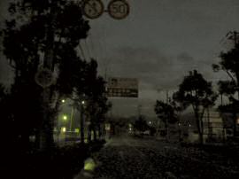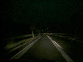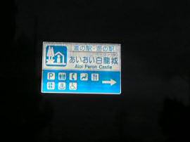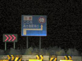 日の出前で暗い中を走るのはスリルがある。まして周囲には大きな車ばかり走っているのだ。ナビに任せて目的に近づいた時、ヘッドライトに反射する表示板が・・・