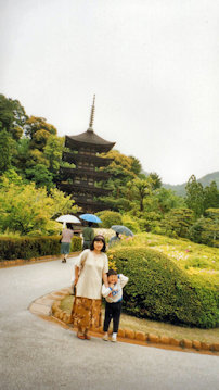 こうなると、やはり最後は母親ですねぇ。 ゆ「いい加減にしろ!」と叱ると、 つ「ママァ~」とさすがは甘え上手ですよ。本当になんであぁ上手かなぁと思う。もっとも五重塔の前で写真を撮った時もしっかりと母親にしがみついていたのですねぇ。 の「つっくんさぁ、あの蛙さんねぇ、つっくんに会うために動かないように石でできているのよ。」 「ママがさっき蛙さんの顔を見たら、つっくんを見てにっこりしていたよ。」というと「ママァ、本当?」と照れているのがこの写真であります。 そしてその日のあとの日程は元気でございました。 この単純さ(パールライス参照)って好きだなあ。 |