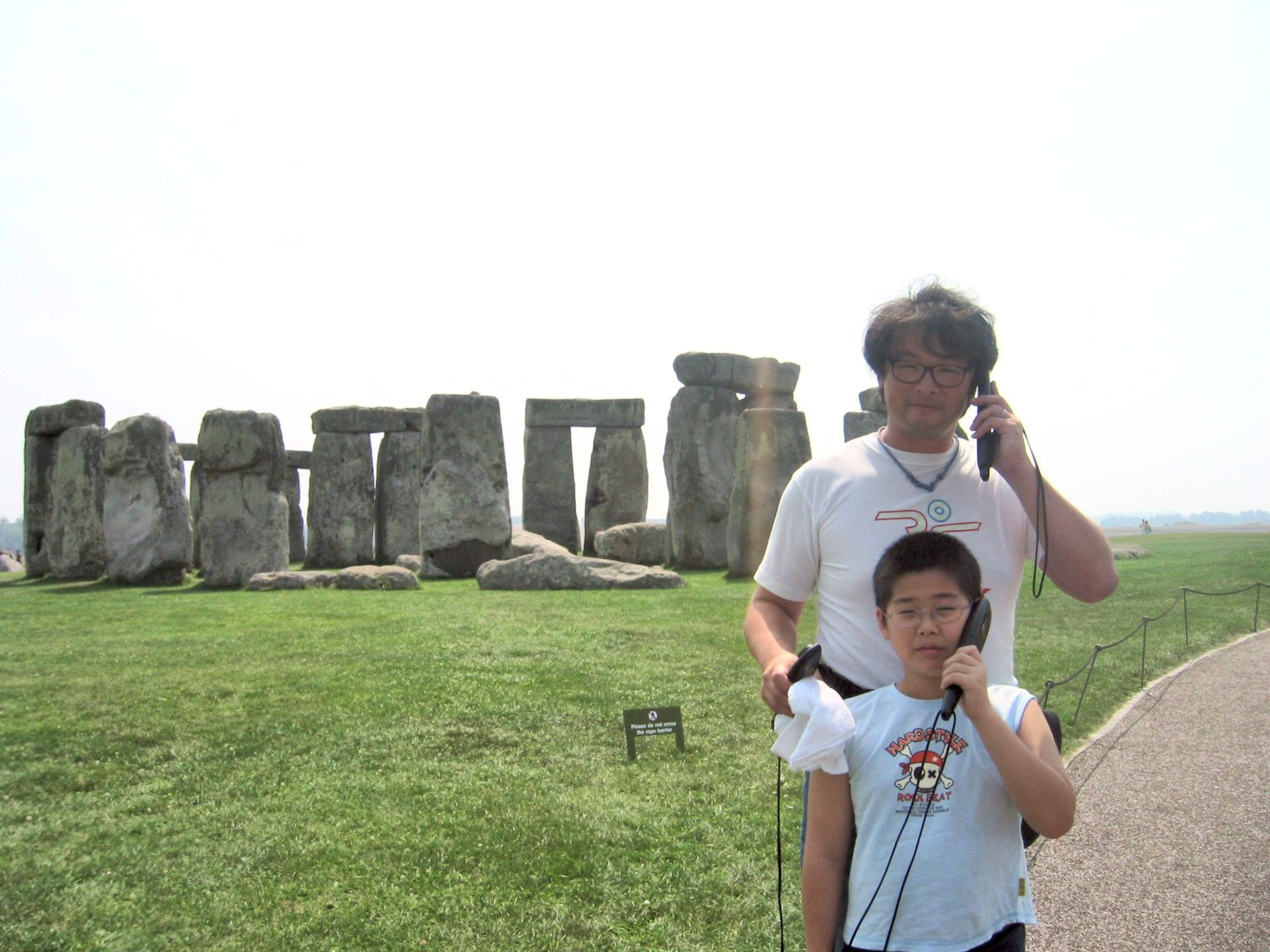 上写真でつっくんが持っている電話様のガイド(日本語版あり…無料)を聞きながらストーンヘンジを一周し、元来た道を戻る。やっと会えたと上には記したが、あっという間の別れである。何か後ろ髪を引かれる思いがあったのはなぜだろうか…