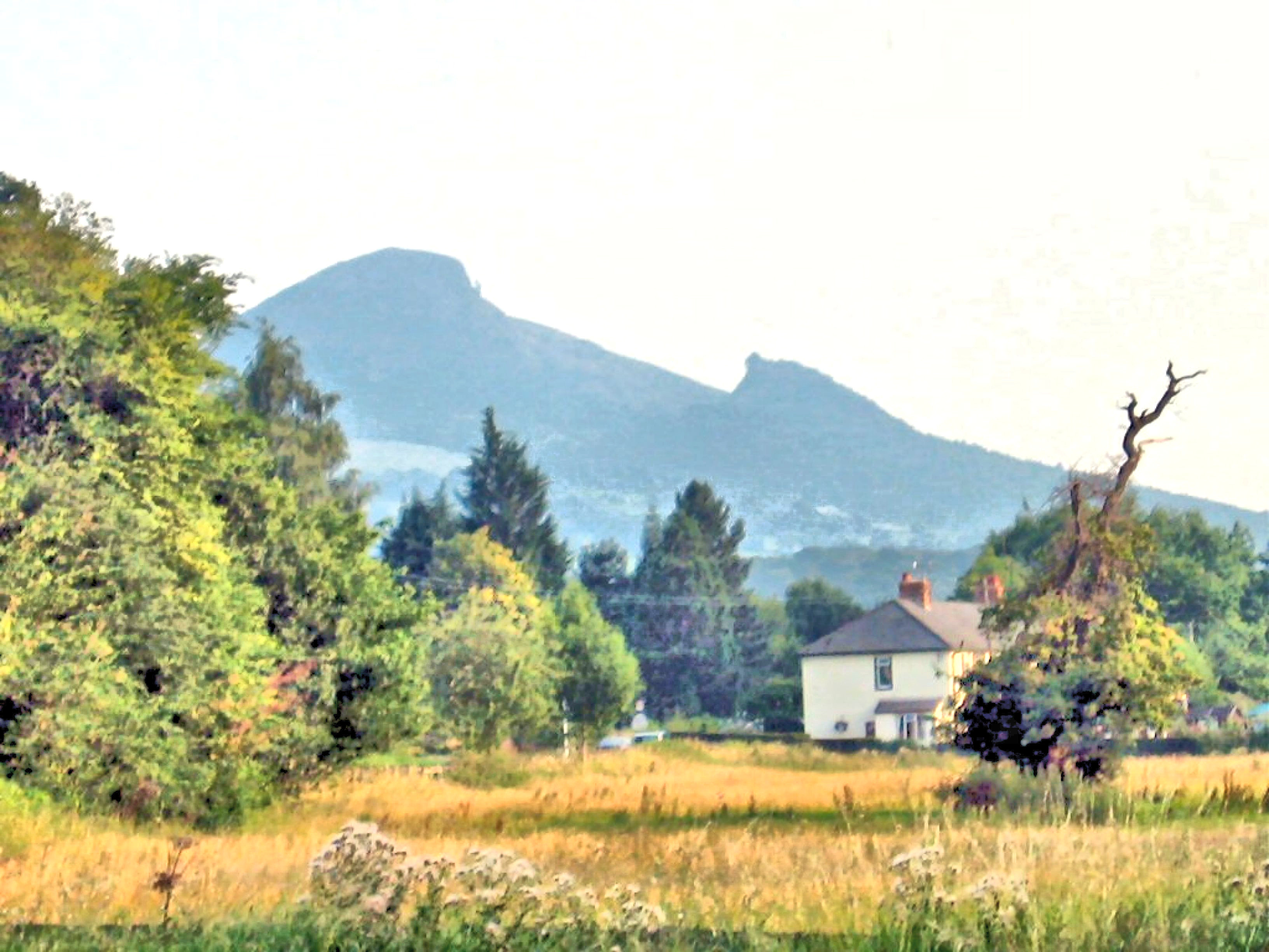 ただ今の時刻(この写真を撮った場所…パンディにて)は7時5分である。ブリストルでは4時過ぎであった。あれから3時間後にいる場所は…。写真を見てくれたまえ。ウェールズに来たのである。ブリストルから60kmのパンディという所である。平均時速20qの計算になるがそんな速度で走っている訳がない。そうです道を間違えたのである。ブリストルからM5で北上し、ウースターからA44で西へ行けばキングトンにとっくに着いているはずだったのだ。 |