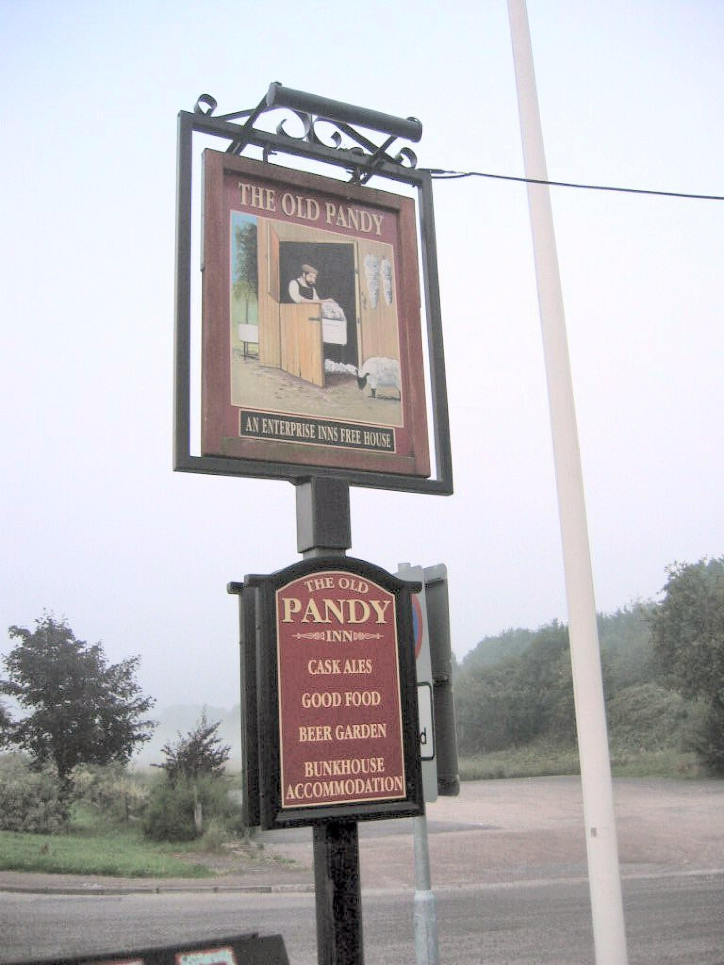 これがThe Old Pandyの正看板だと思う。なんともおしゃれにできている。パンディの歴史も感じさせる看板である。しかしながら、車を運転している時に私の目に飛び込んだのは14£50の値段の入った立て看板であった。アランさんごめんちゃい。 |
