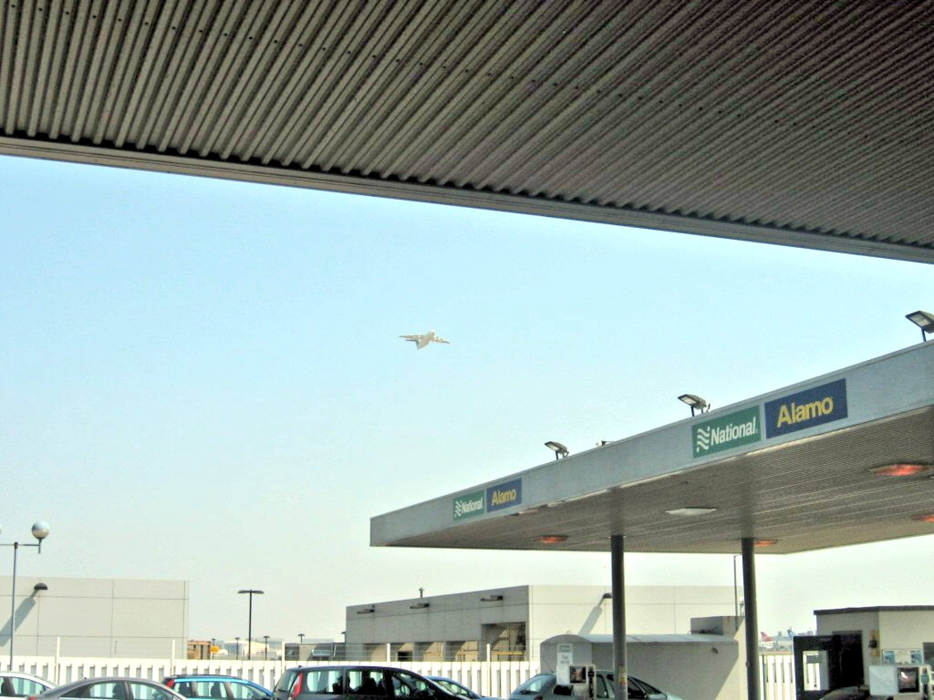 爆音が轟いた方を見るとジェット機が着陸姿勢に入っている。そう、ここは空港に隣接するレンタカー屋さんであった。