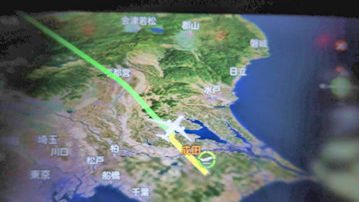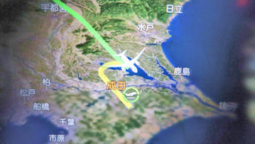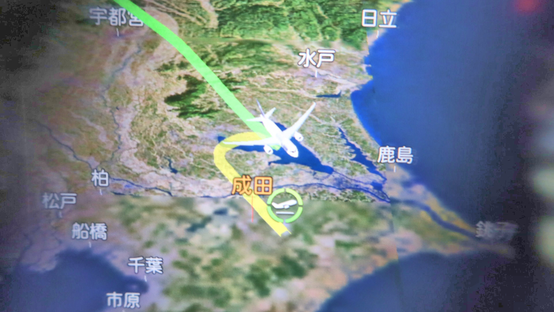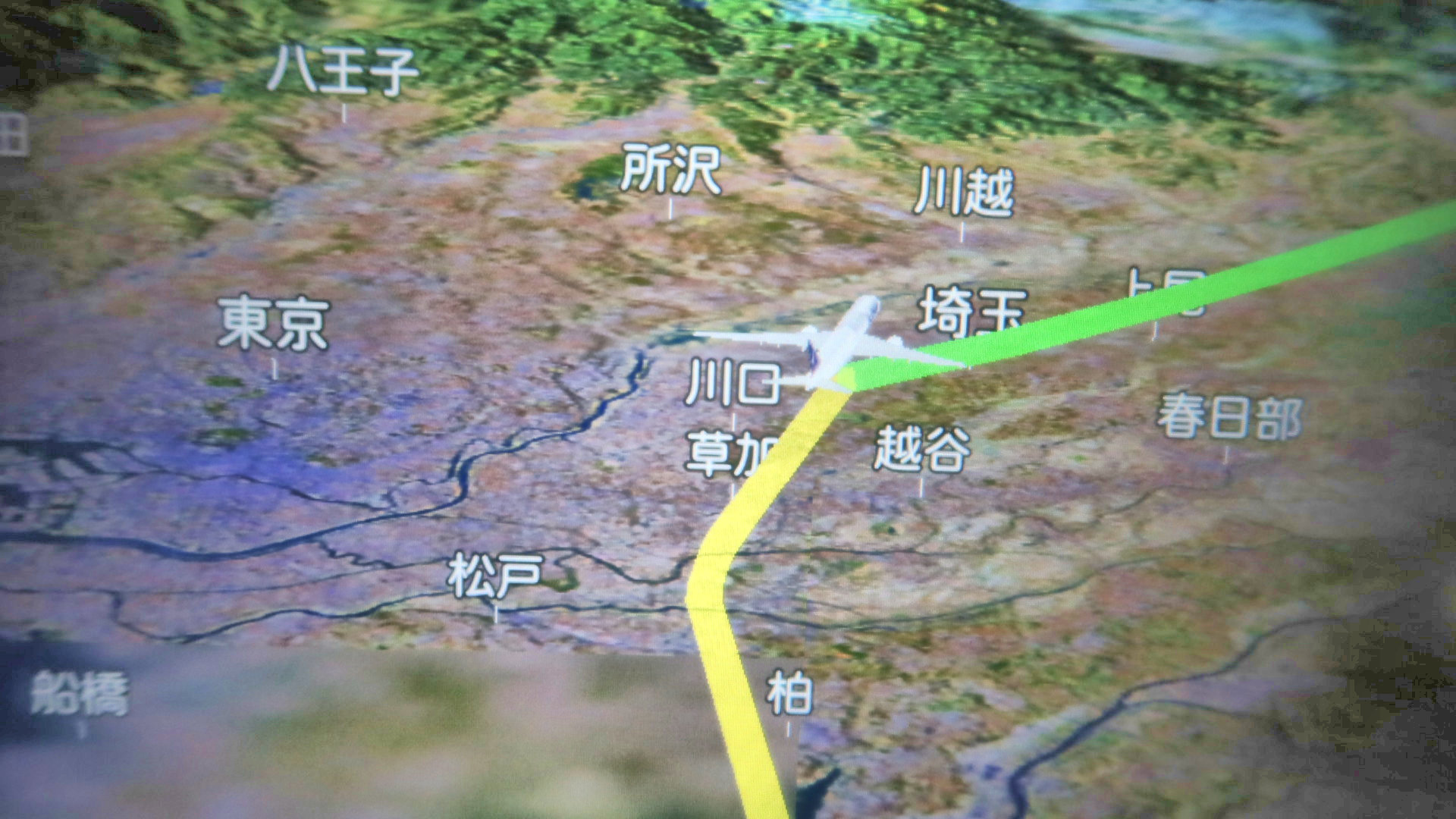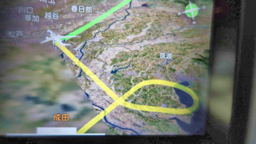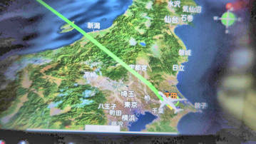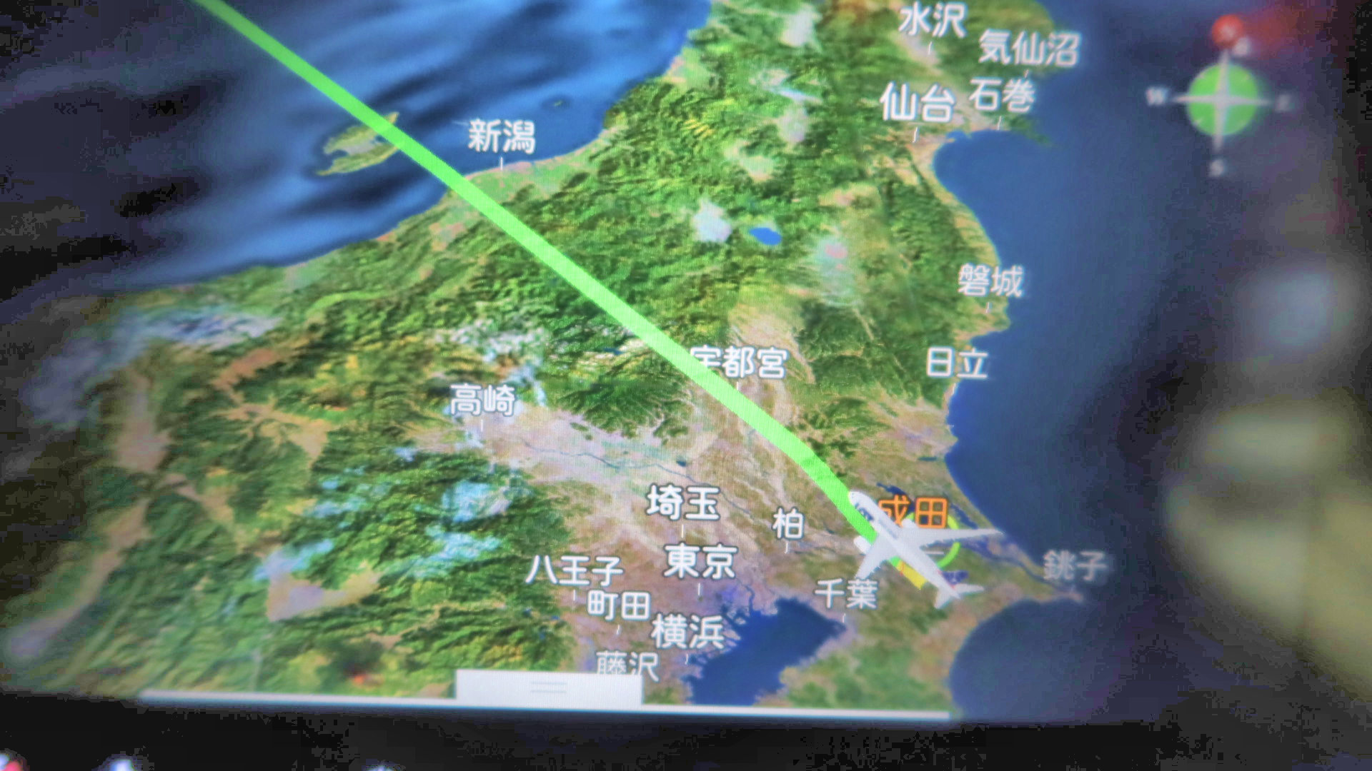 成田を飛び立ち、機首は佐渡島を向いている。 |
