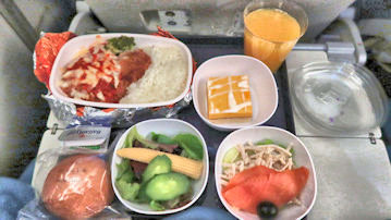 デザートもついて、このスペースにこれだけのものが載る。考えた人ってすごいな。
