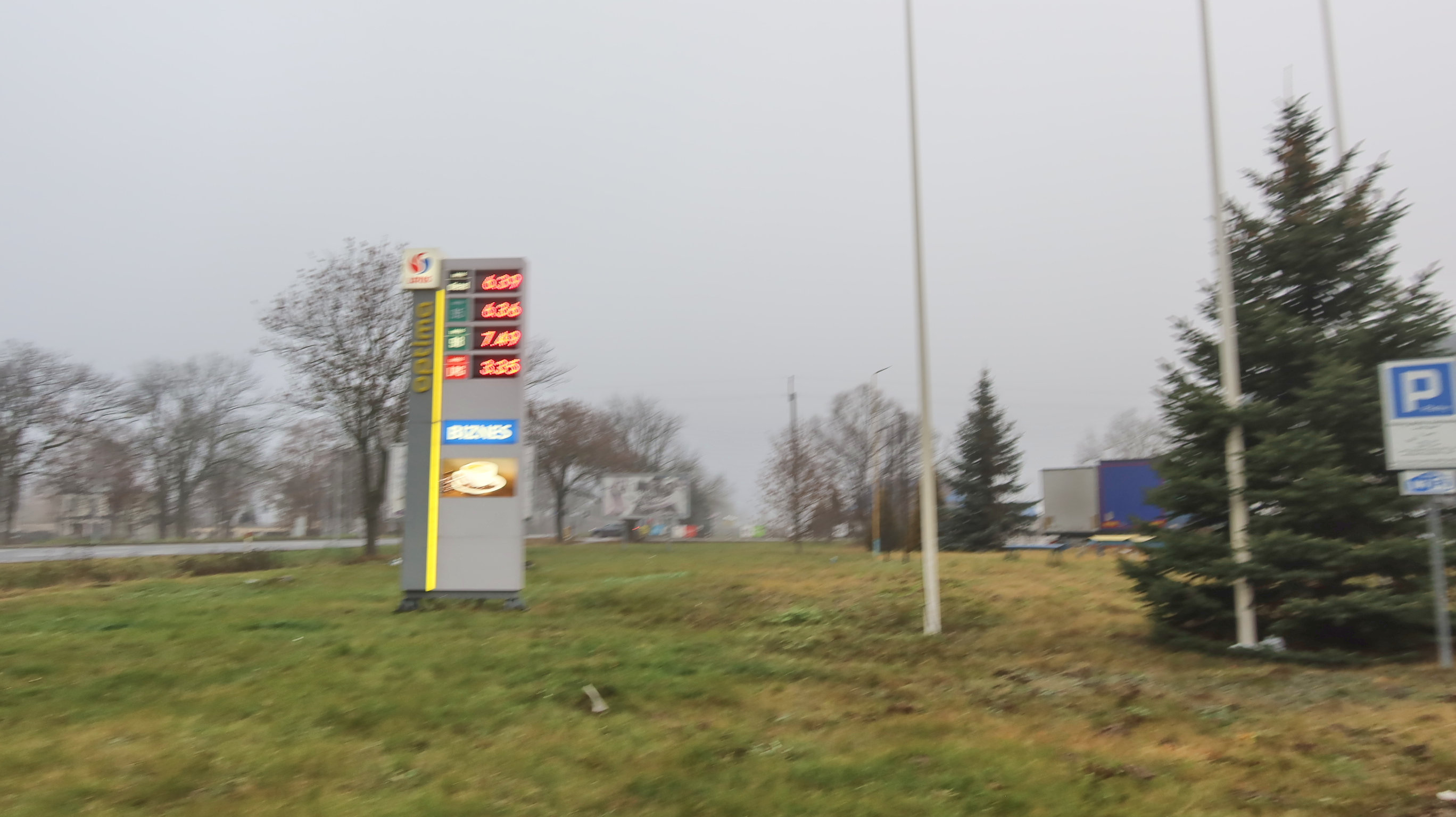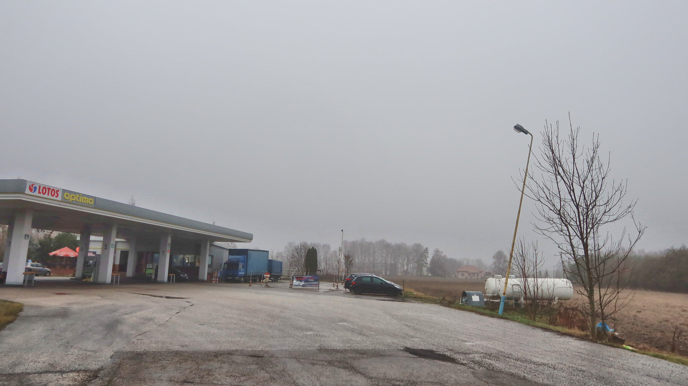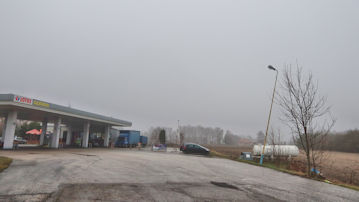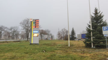 これからさらに田舎に行くのだが、このガススタンドでトイレ休憩だ。ヨーロッパはトイレをどうするかだ問題の一つだね。 |