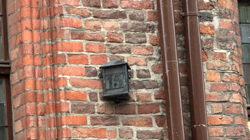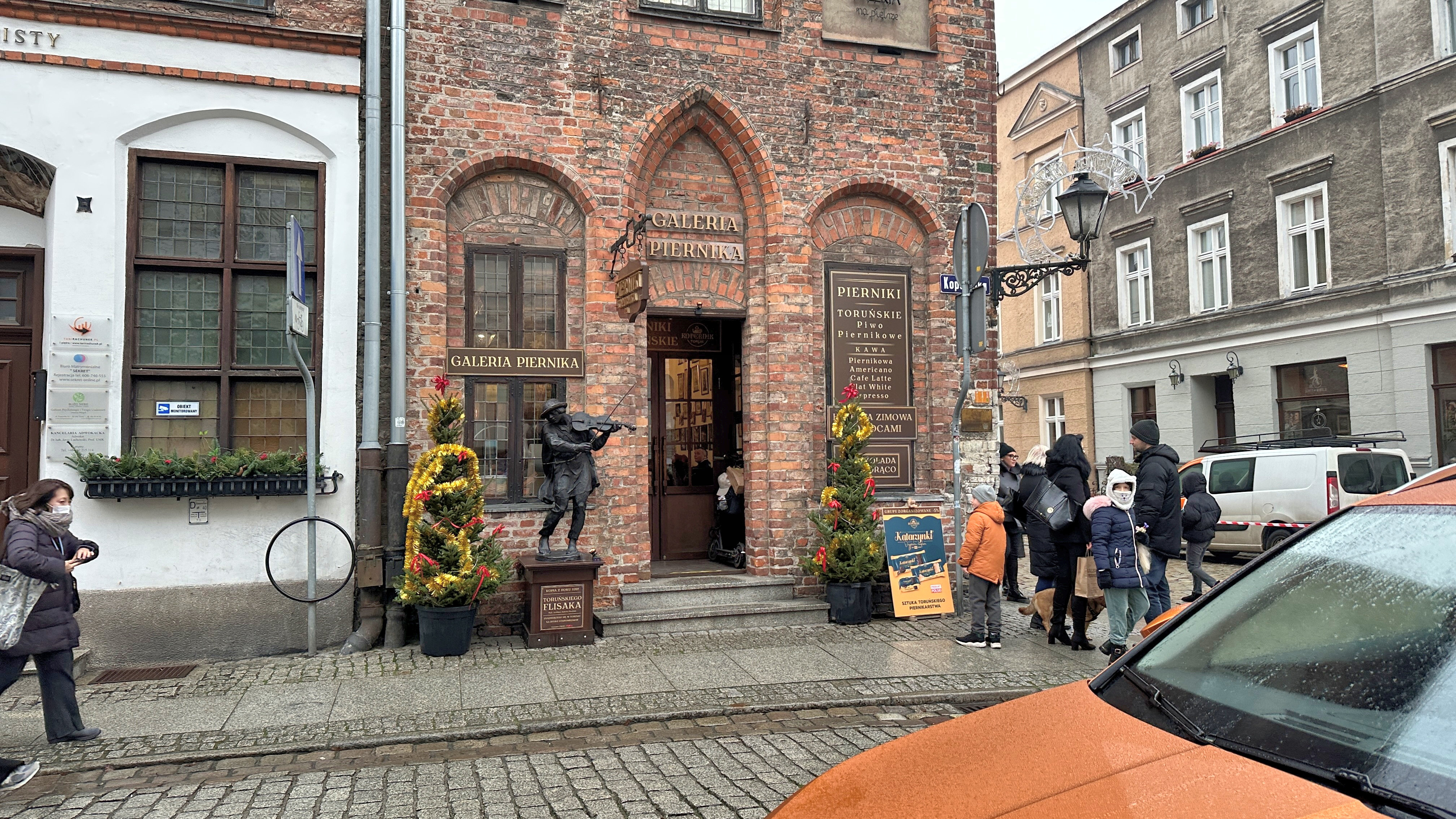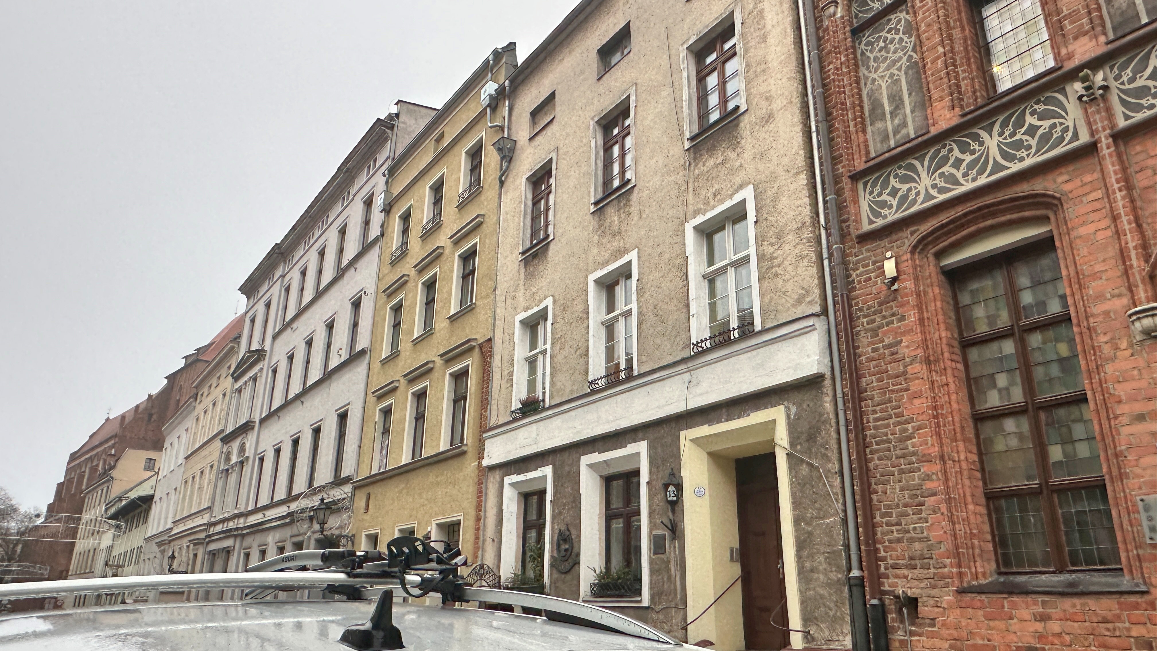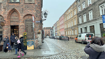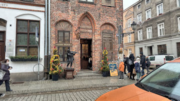 まだ生家のある「ニコラウス・コベルニクス通り」にいる。生家の二棟の建物の間には写真の住所表示のようなものがあった。