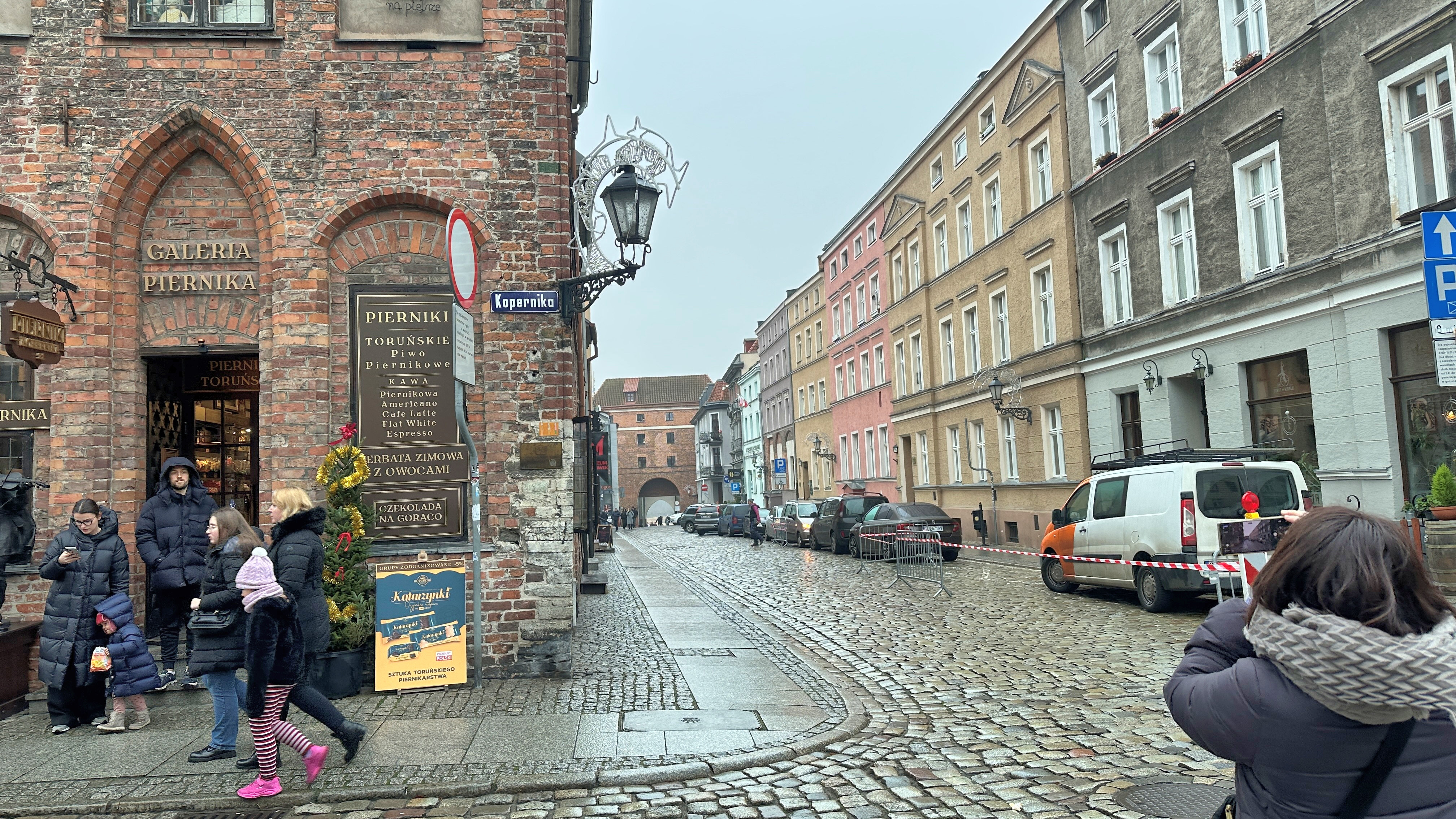 このニコラウス・コペルニクス通りと交わっている道、左にホテルコペルニクスのある写真は交差点から南側を写している。この通りの名称が「聖霊」なのである。む |