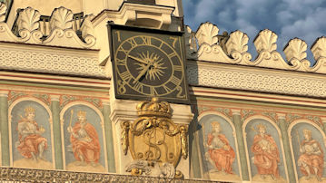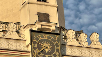 | 正午になると時計台から子ヤギの人形が現れる仕掛けがしゃれている。。 |
