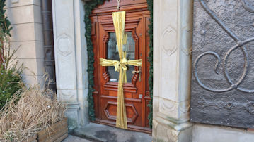クリスマスツリーやガーランドの代わりに飾られる太い金色の十字架である。キリスト教のシンボルだからね。 |
