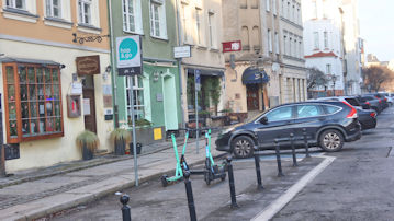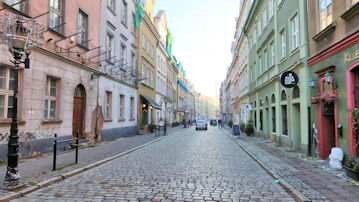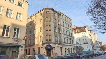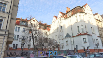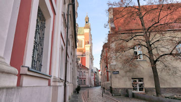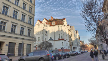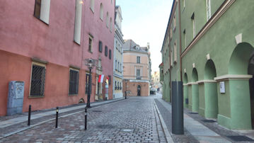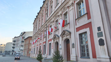 赤い建物は「ゴルカ宮殿」という史跡、緑の建物は「ポズナン起業支援センター」だ。 |