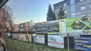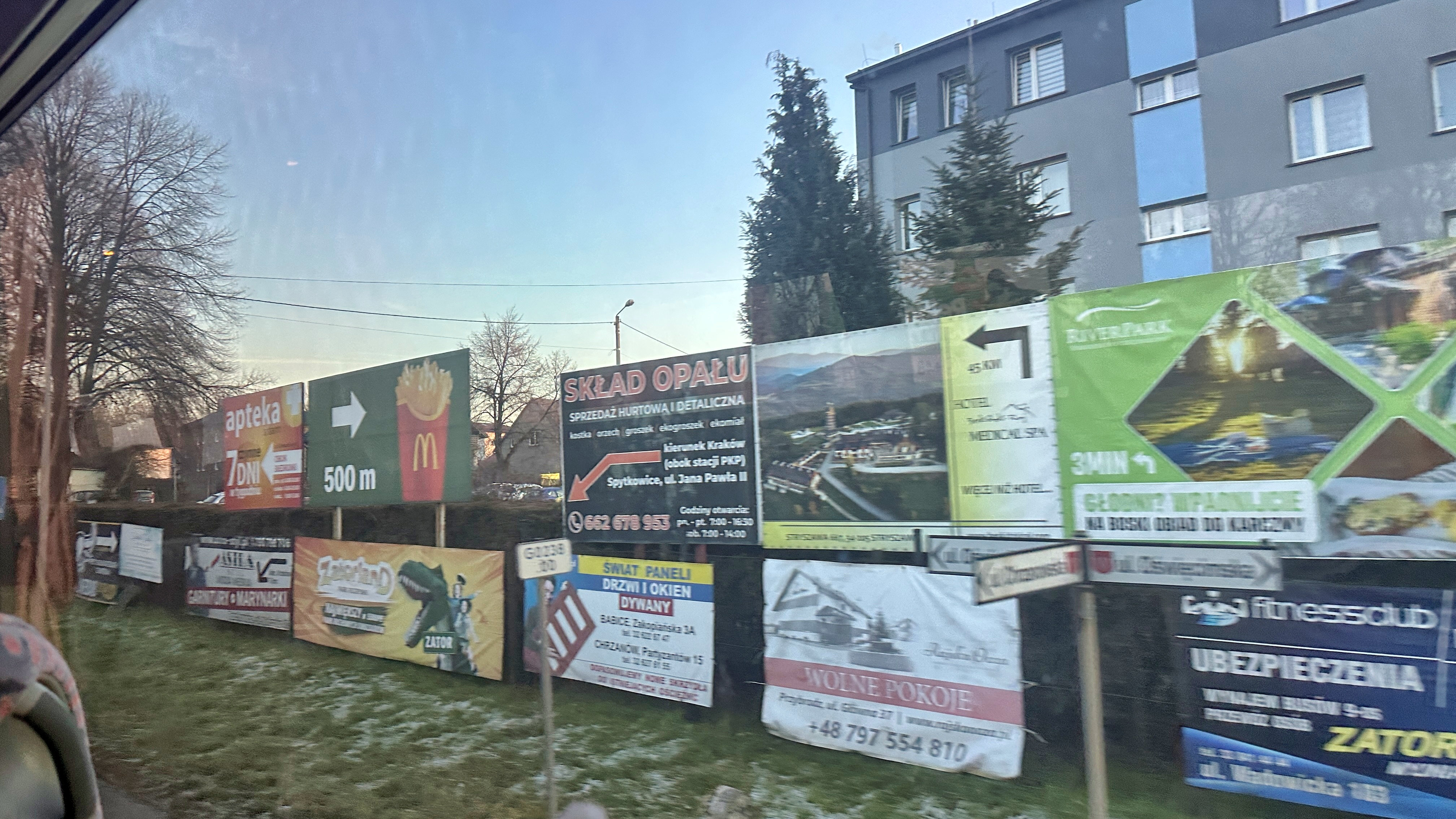 看板の一部にはクラクフまでの道順も載っていますなる。 |