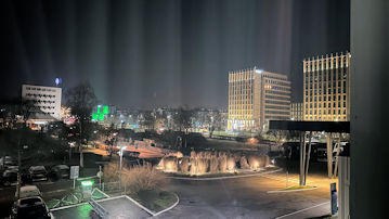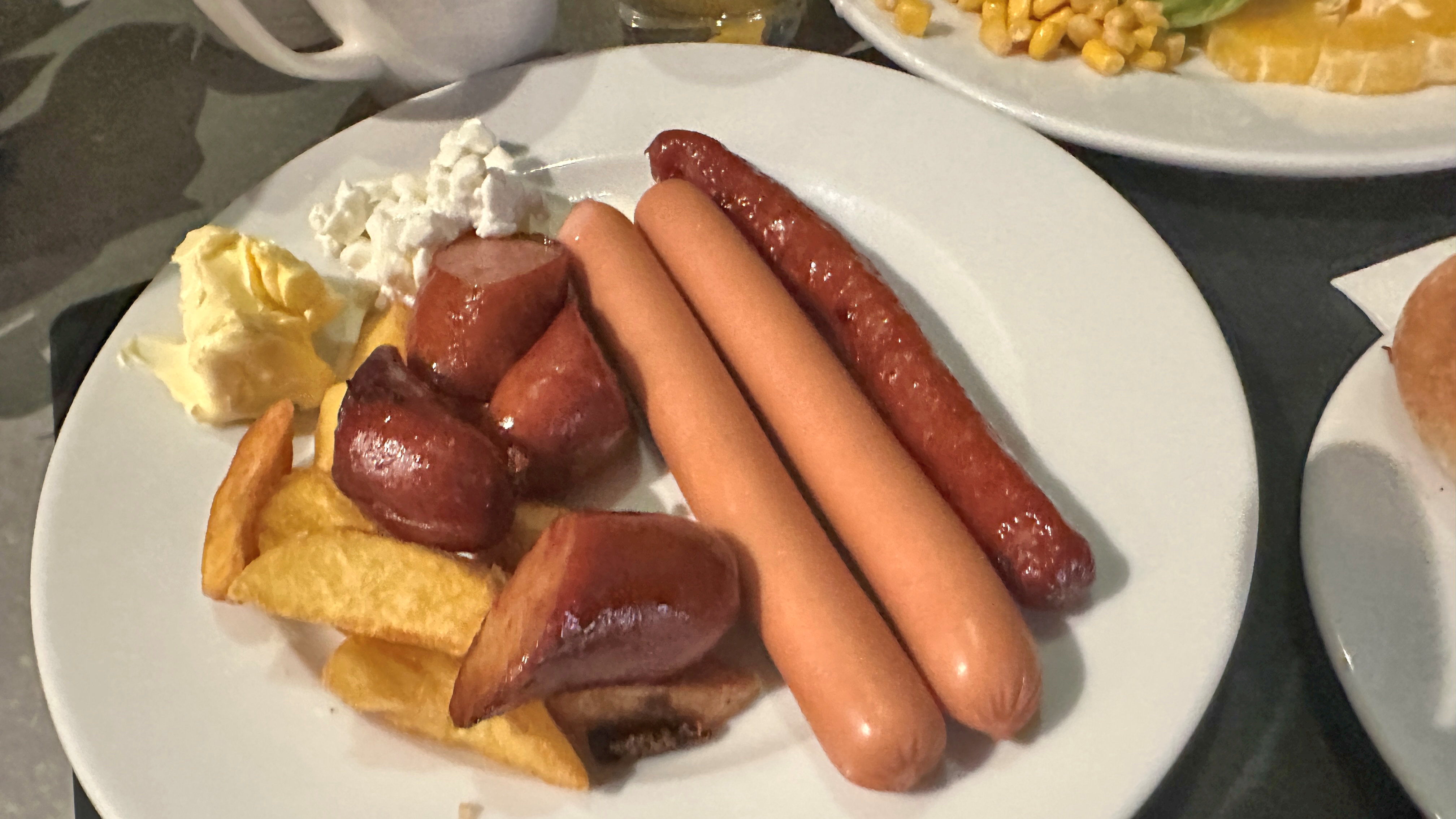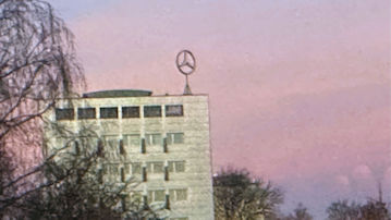 ホテルとの間の公園をメルセデス・ベンツの建物とで挟む。そういえば、昨晩はこの近くのコンビニで買い物をしたのだった。