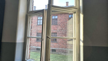 | 気持ちを和らげるつもりれで外を覗いたが、有刺鉄線が目に入り、また緊張が、、、 |