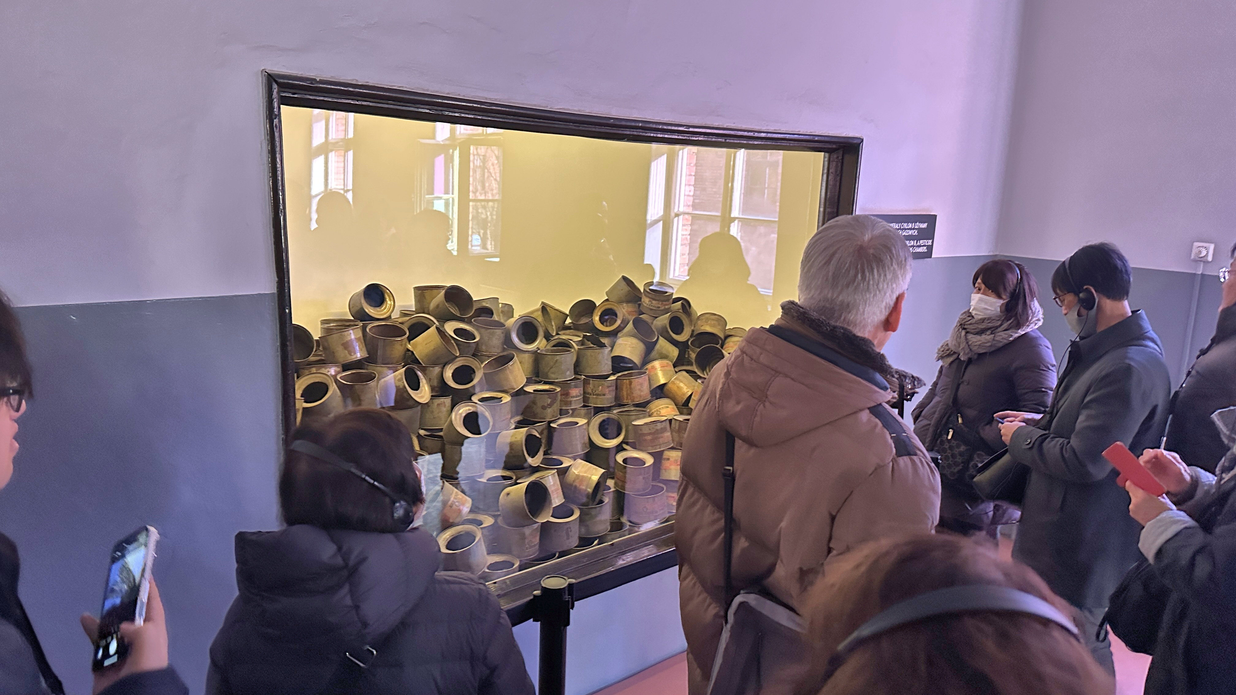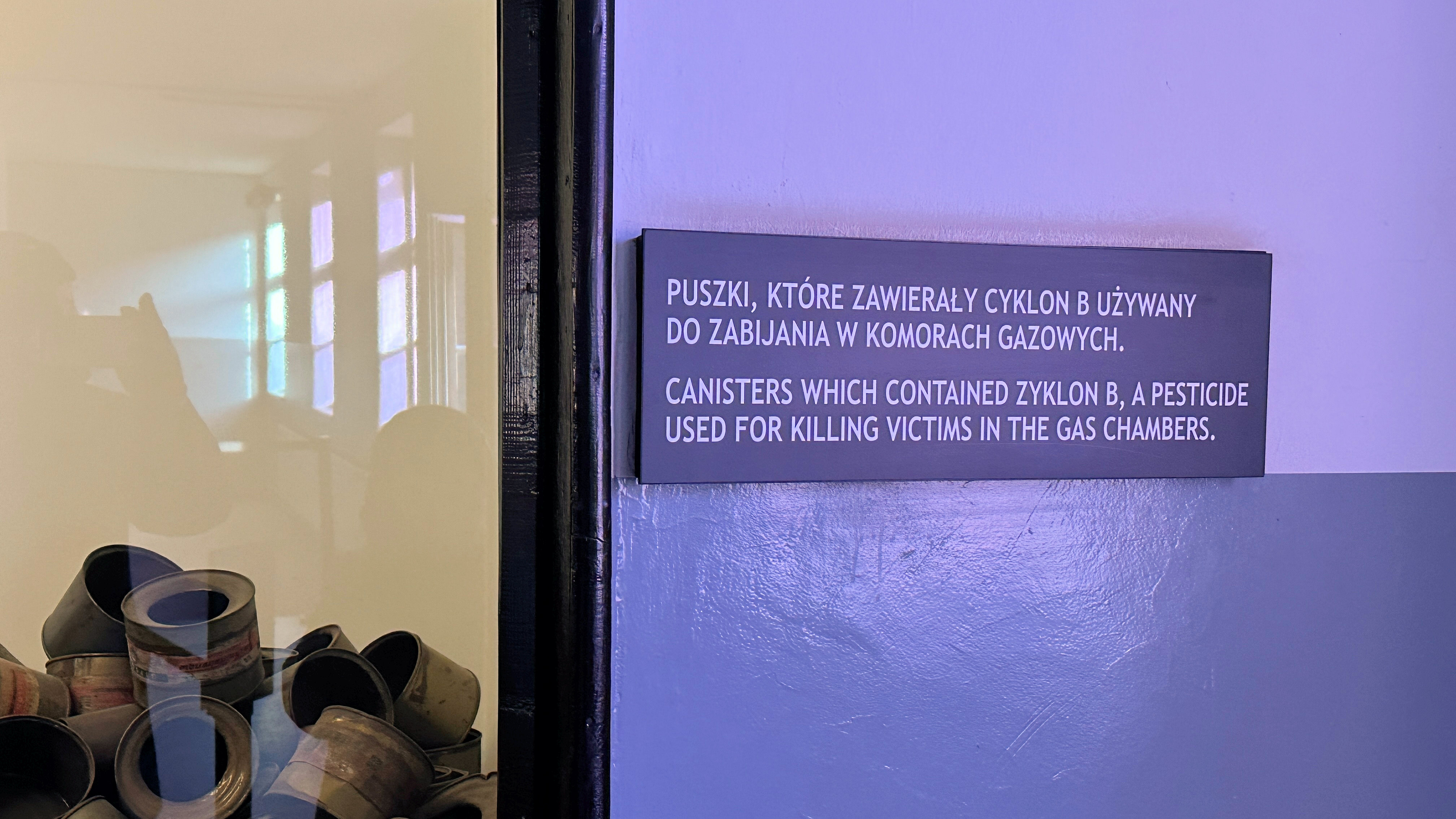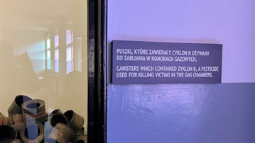 | ガス室で犠牲者を殺すために使用された殺虫剤、チクロン B が入った缶。 |