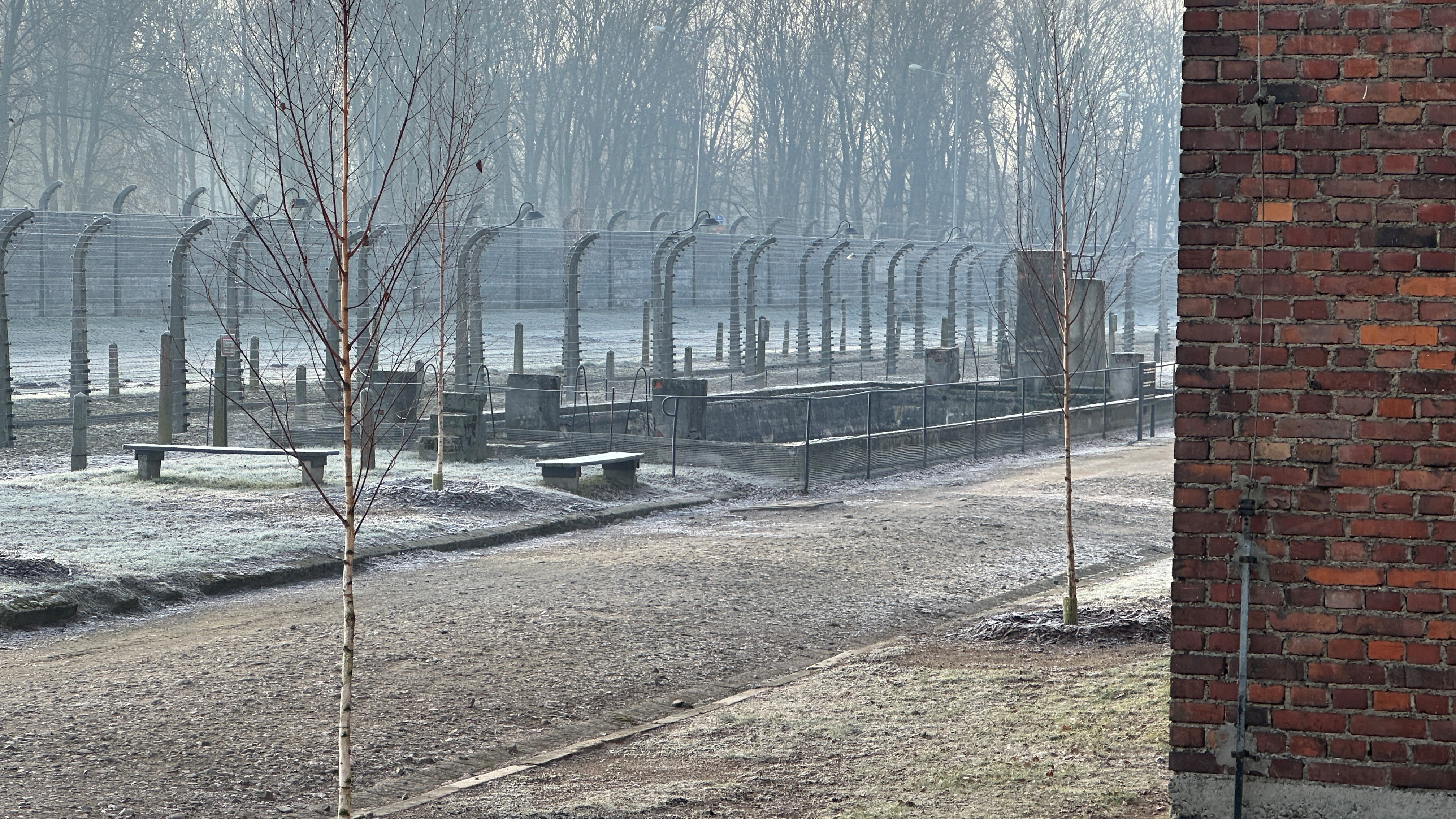 囚人が逃げられないように、収容所は高圧電流を流した有刺鉄線が張られている。
