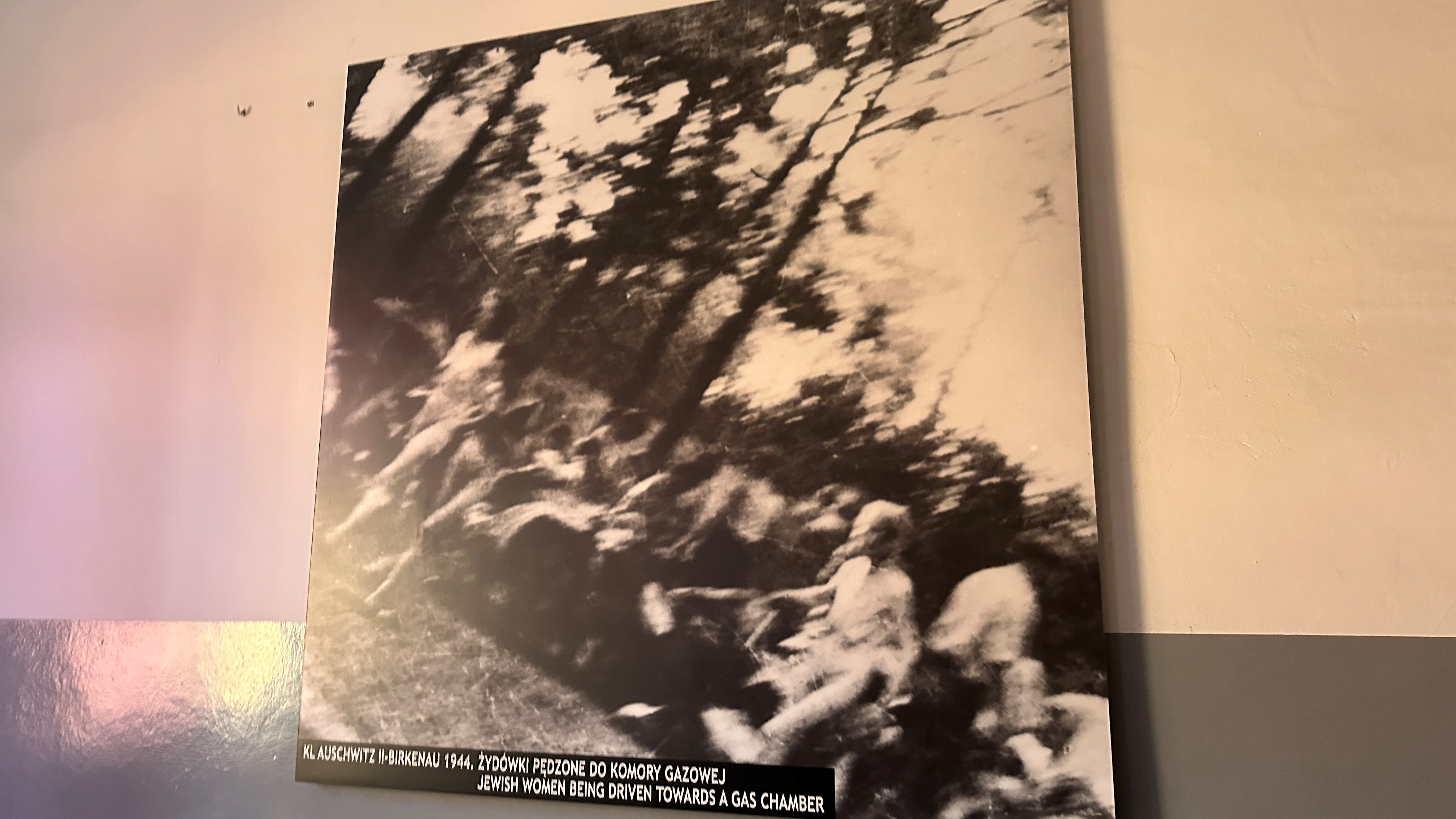 | クラウシュヴィッツII-ビルケナウ 1944年。ガス室へ連行されるユダヤ人女性たち。 |