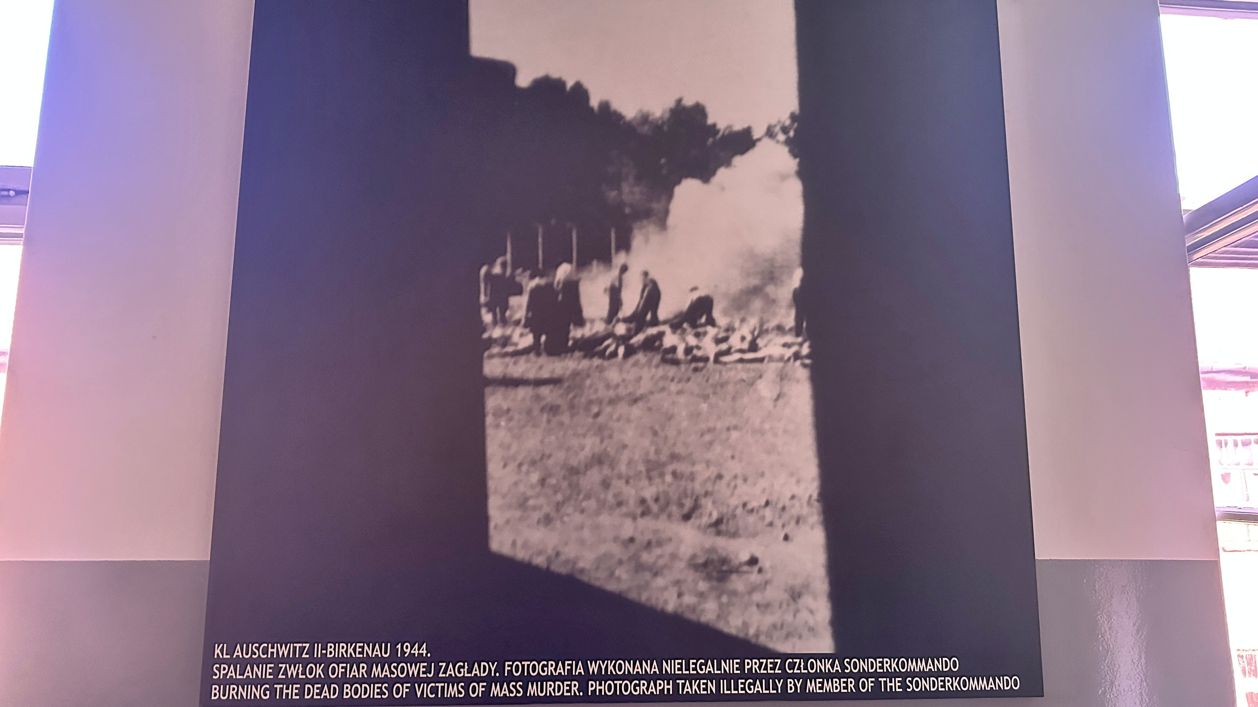 ゾンダーコマンド隊員による大量虐殺の犠牲者の遺体を焼却している様子。ゾンダーコマンド隊員が違法に撮影した写真。