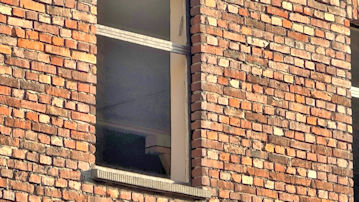 | 中庭側の10号棟の窓は板で覆ってはあるが、銃声などは響いたはずである。 |