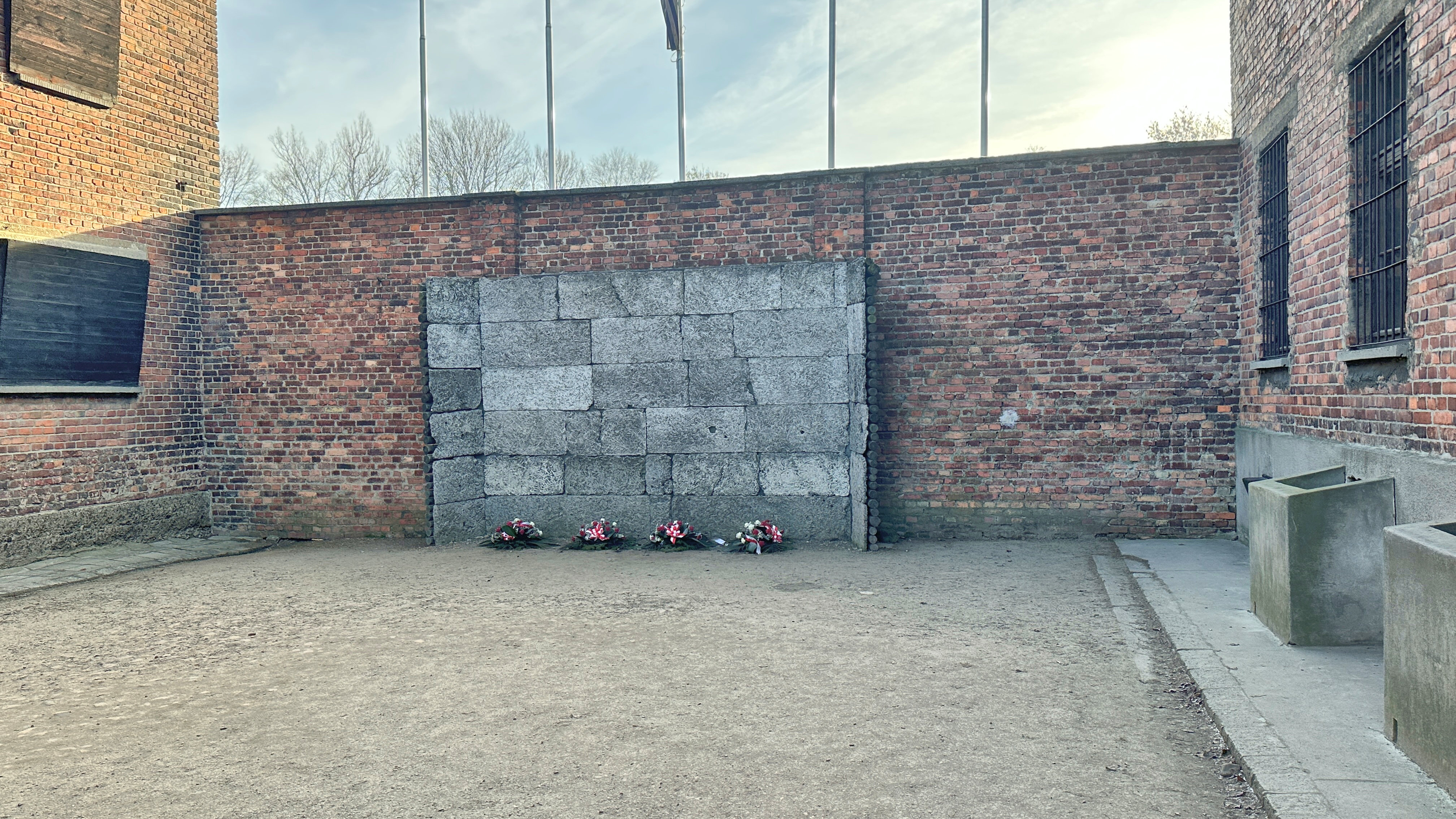「処刑前に女性たちが裸になった洗面所 その後、彼女たちは2人ずつ庭に連れて行かれ、死の壁で射殺された。」 |