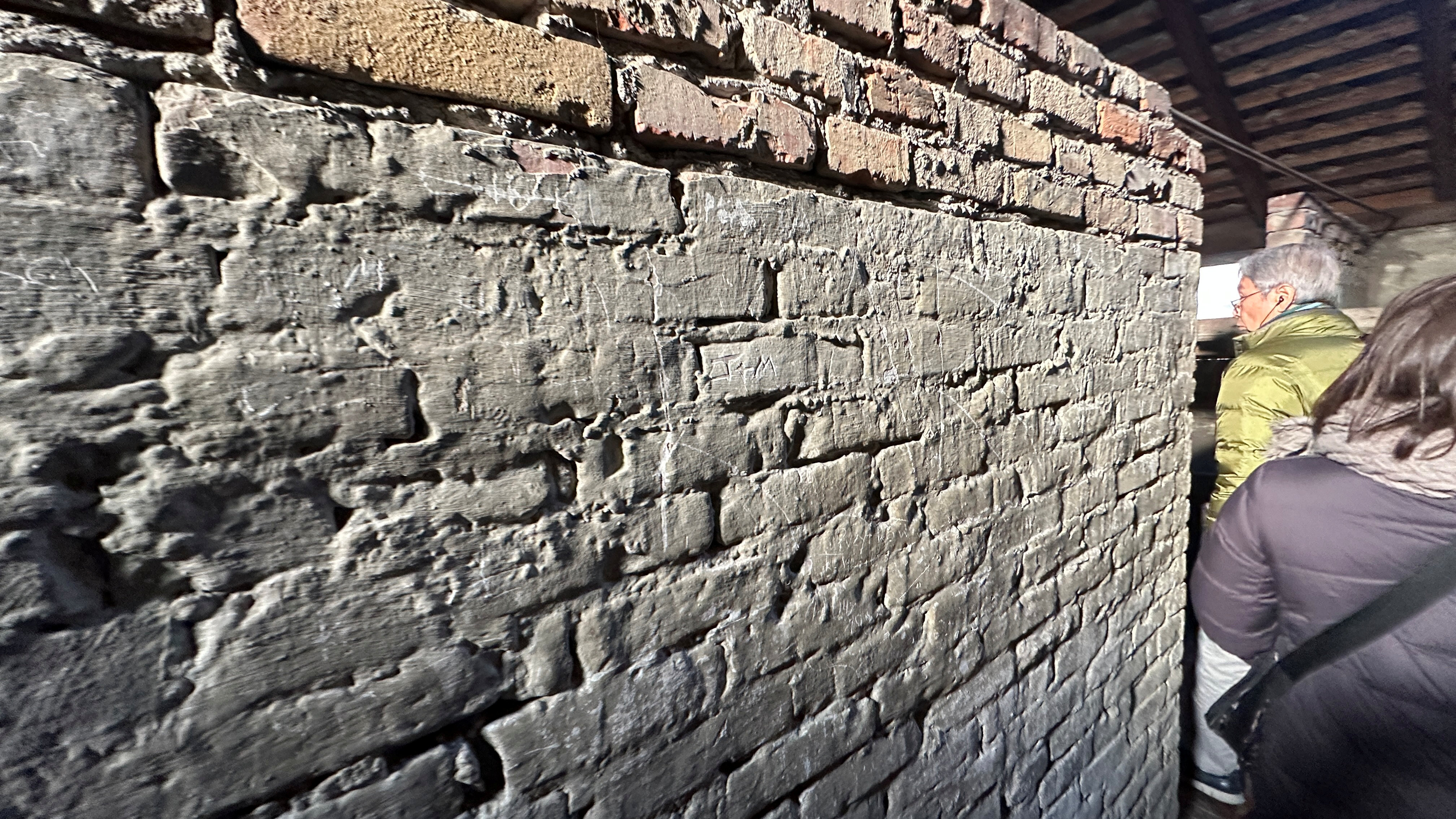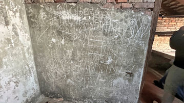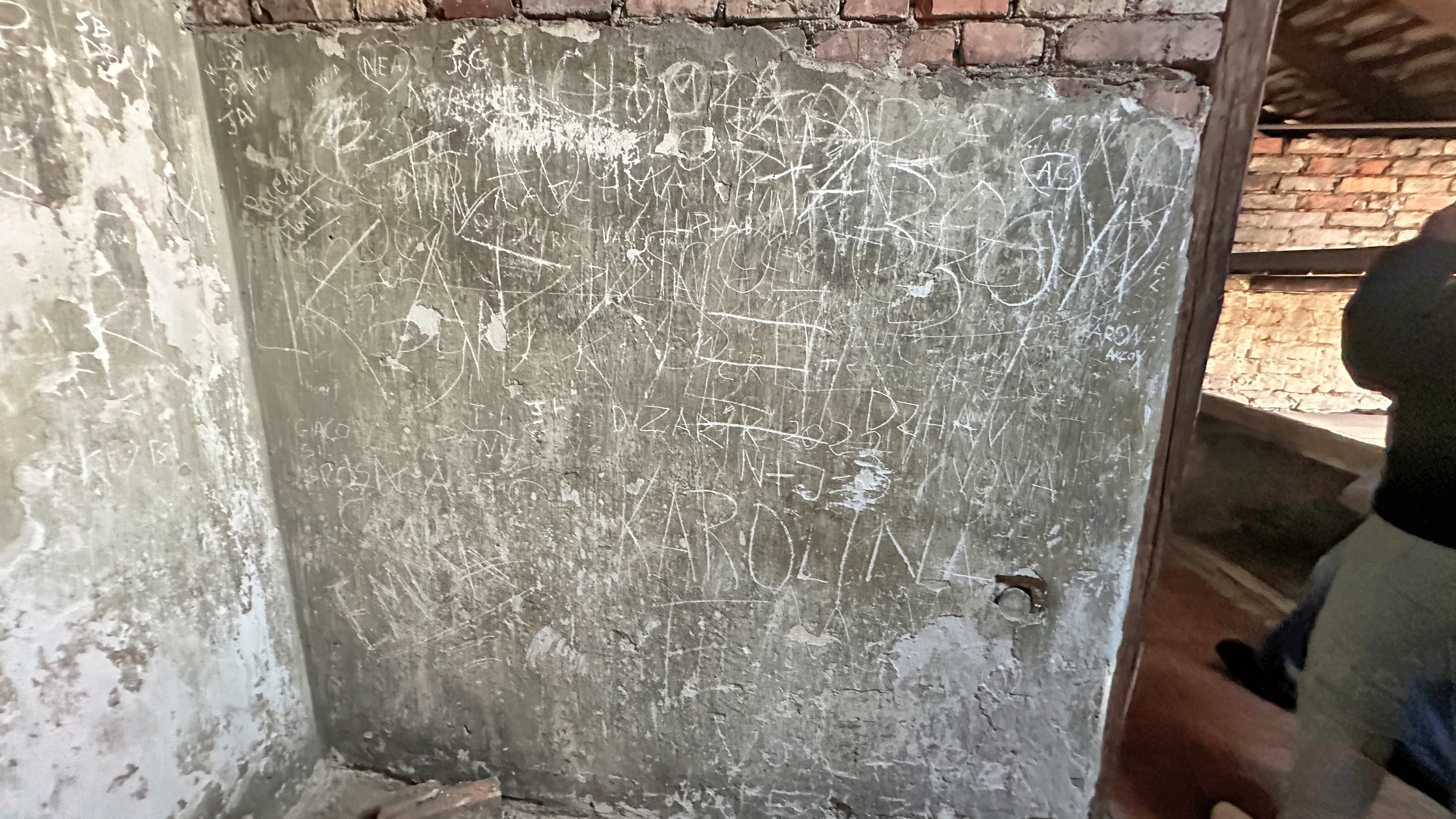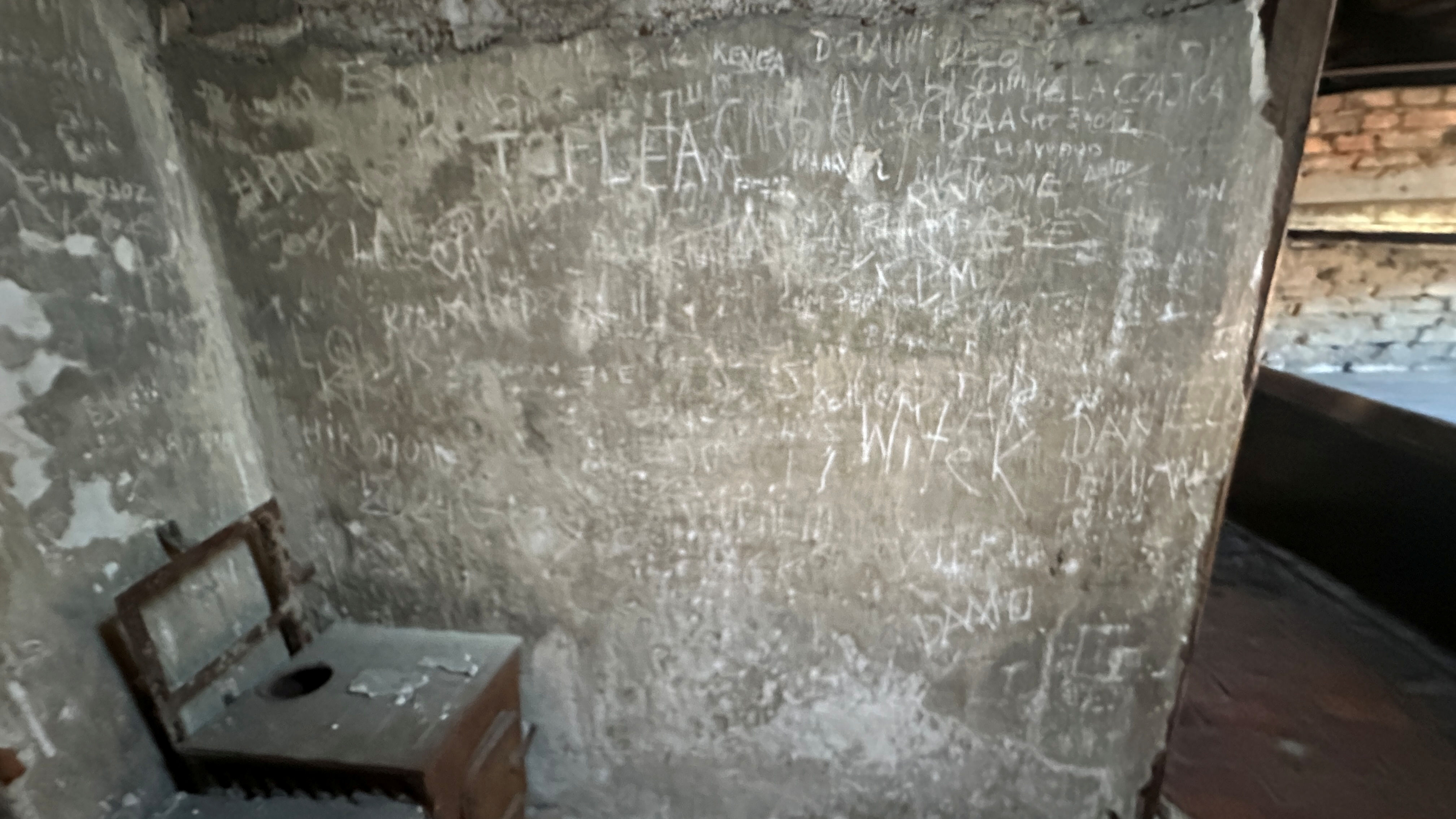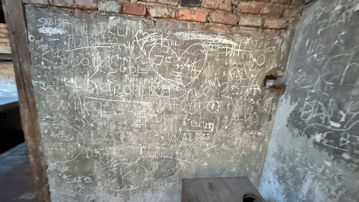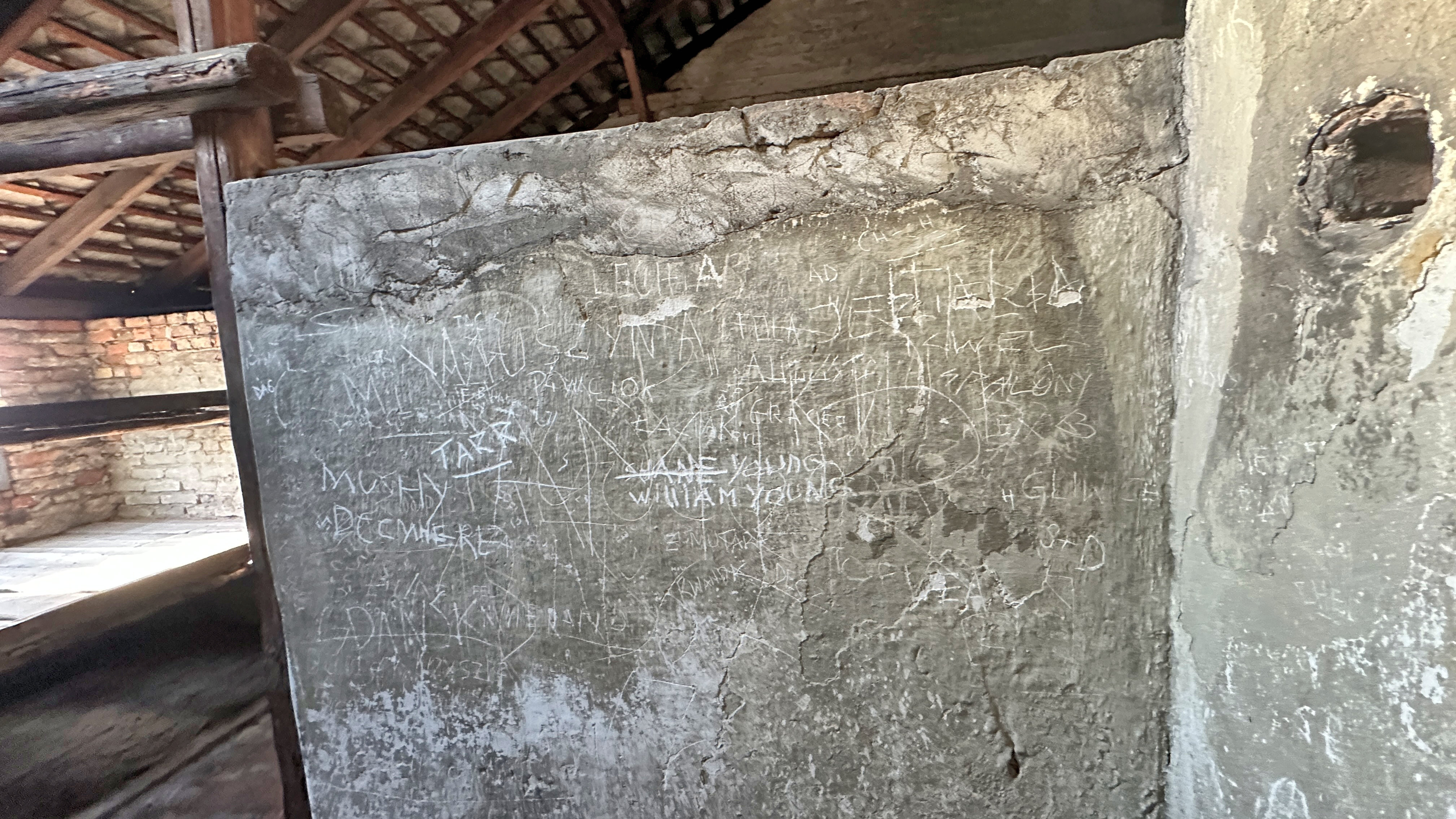 壁に書かれた字は、当時の囚人が書いたものなのだろうか。 |