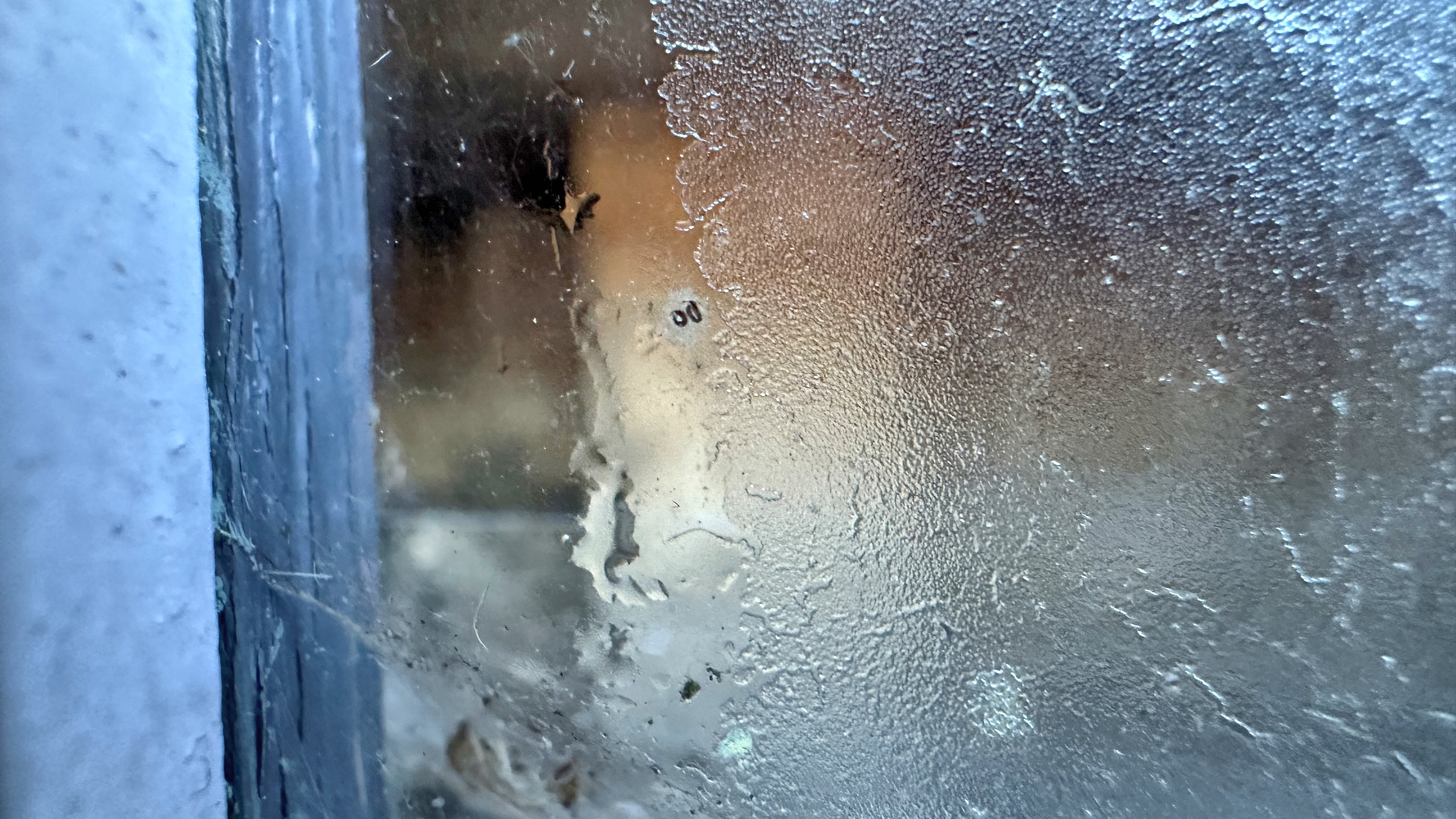 ガラスが凍っていて良く見えない。 |