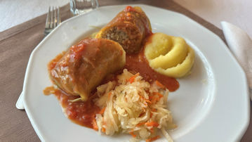 「マグダ イン ボブレク レストラン ディナー オシフィエンチム」というレストランの庭にいるのだ。 |