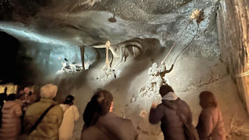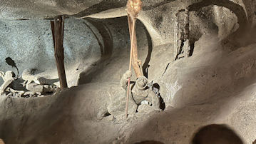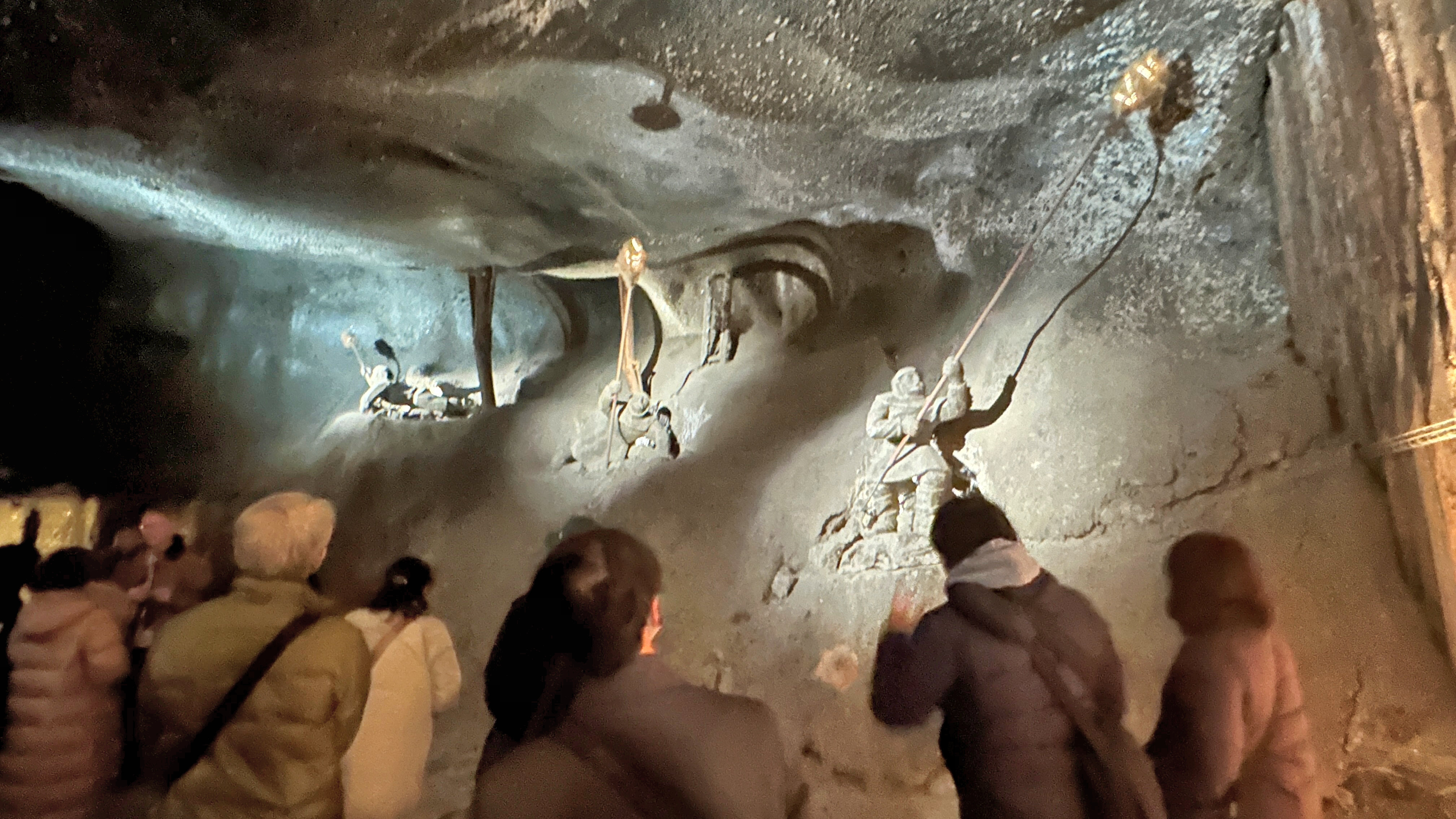 坑道内に溜まったガスに火を着けて燃やし、大規模な爆発事故を防ぐための作業の様子。