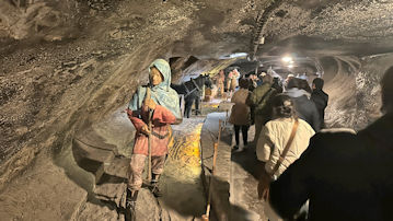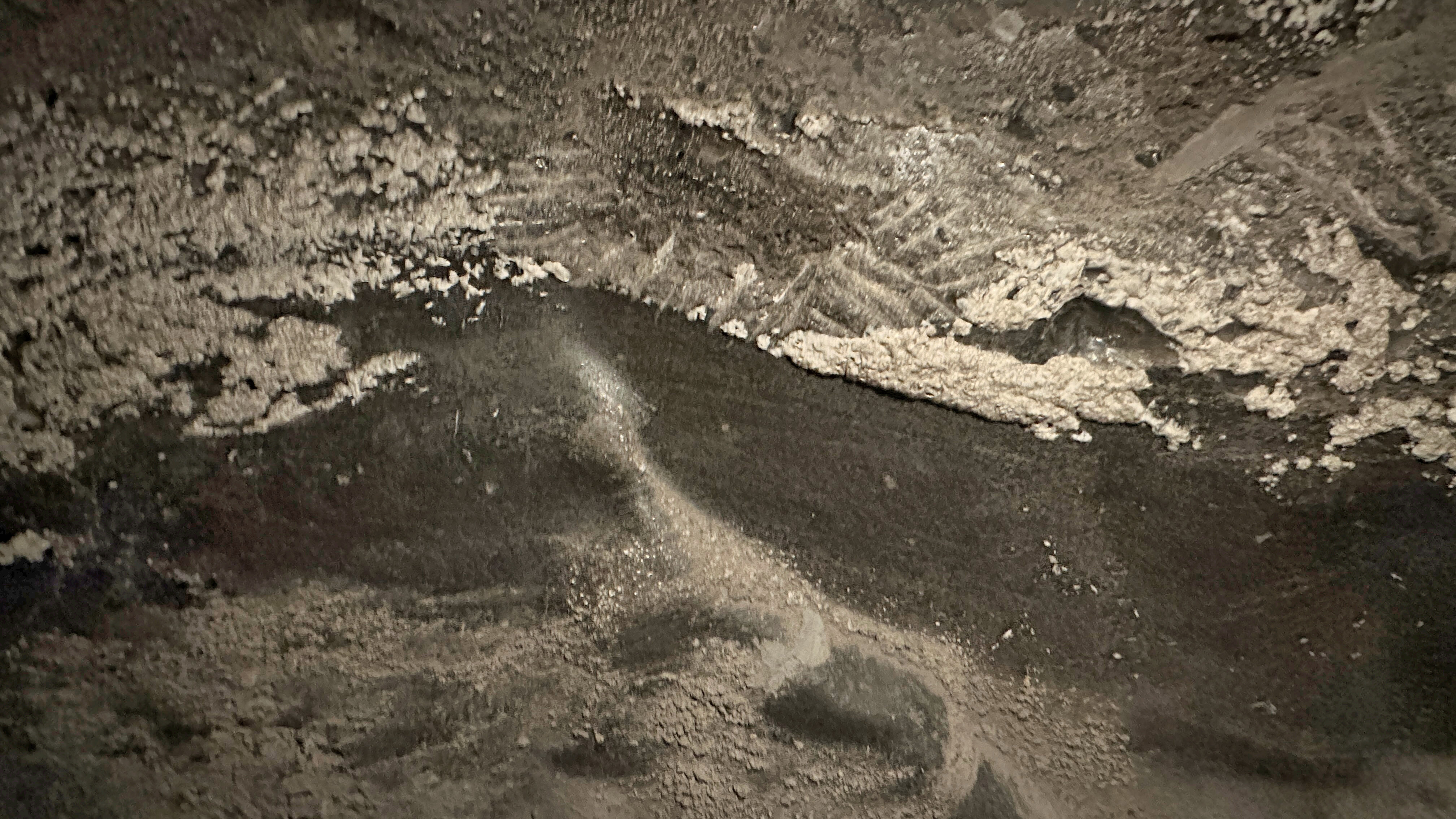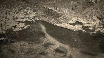 壁の岩塩が結晶化している所もある。
