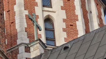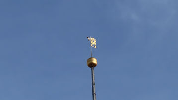 マリア聖堂の高い方の「ビューグルタワー」の上に立つ「風見鶏」。 |