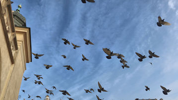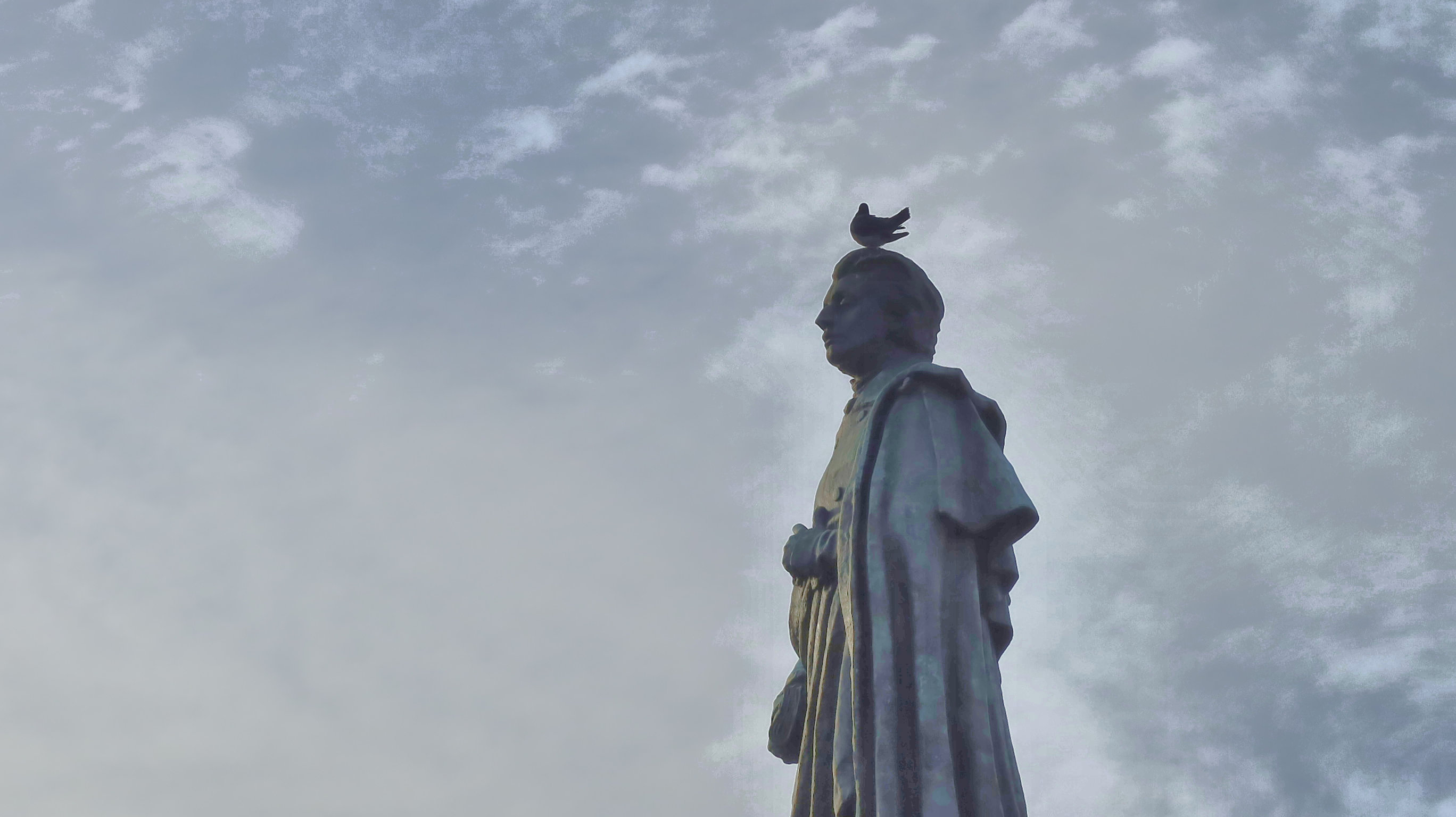アダム・ミツキェヴィチ記念碑の頭にも鳩がいる。 |