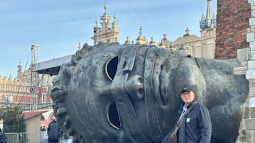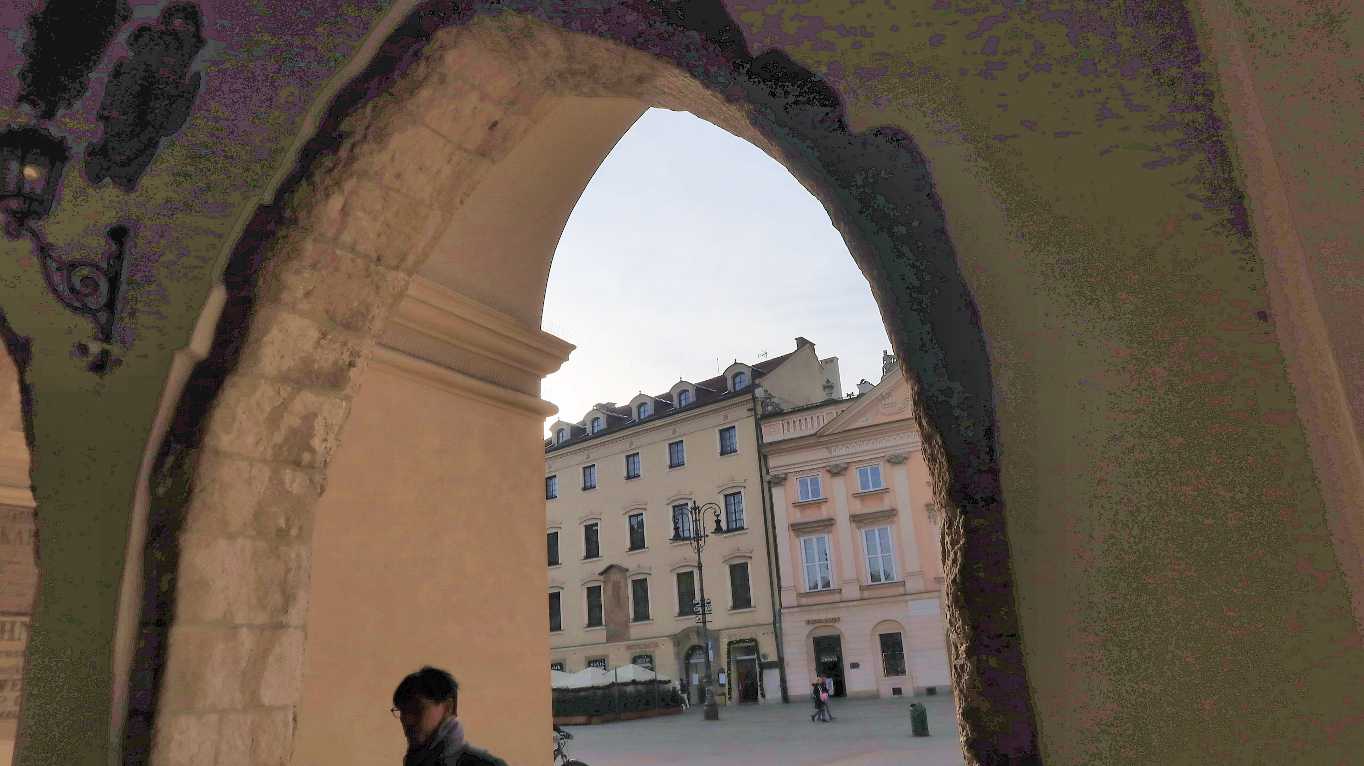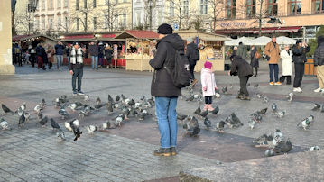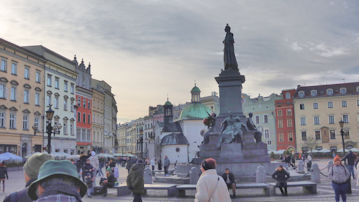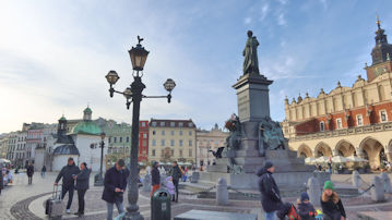 | 「アダム・ミツキェヴィチ記念碑」の向こうから歩いてきた。 |