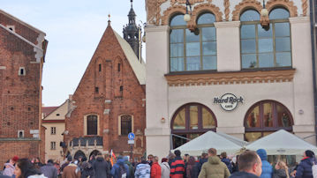 | 織物会館の左には「市庁舎塔」、右には「聖ヴォイチェフ教会」が見えてきた。 |