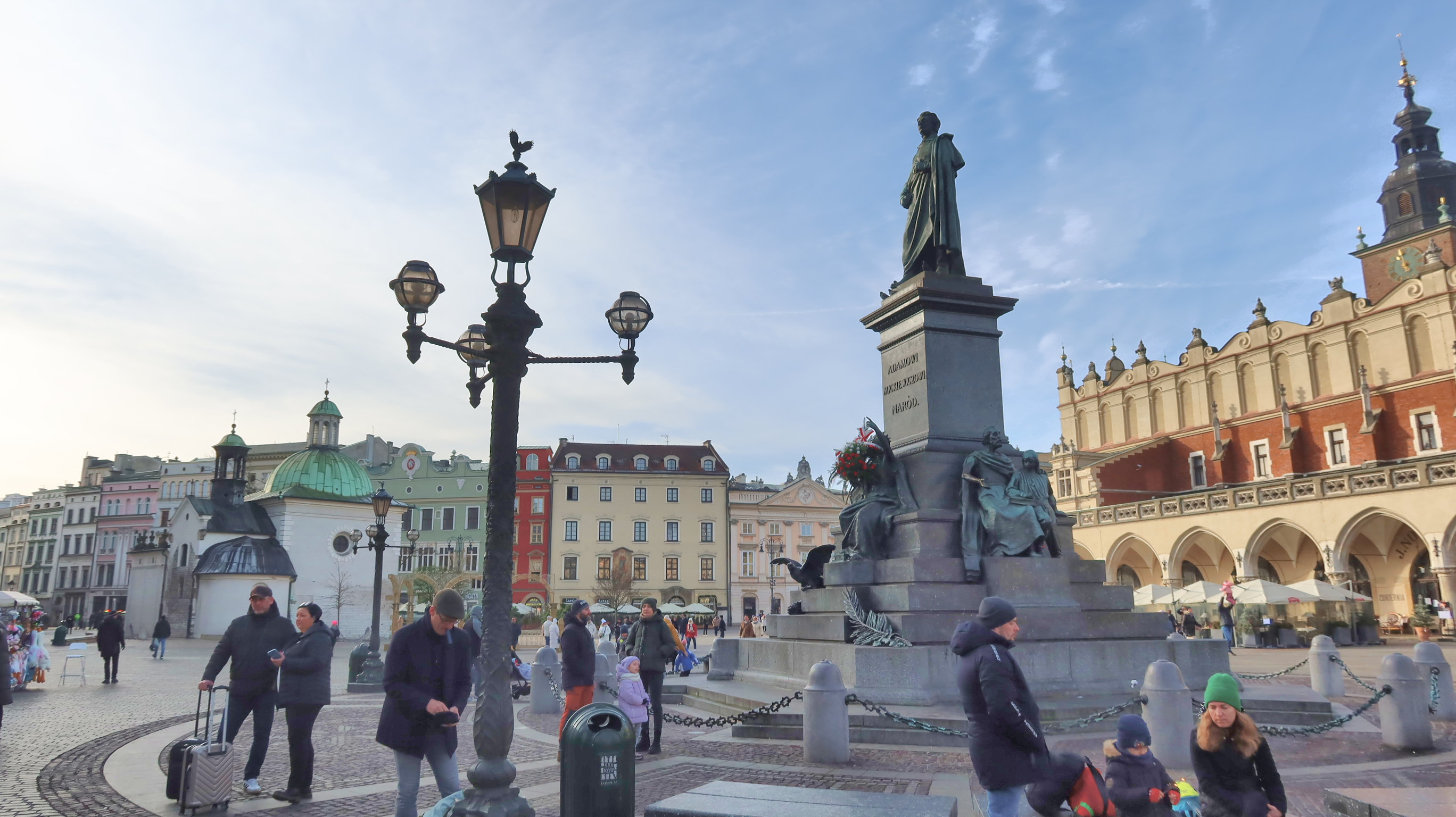 | 「街灯」、「アダム・ミツキェヴィチ記念碑」、そしてその後に織物会館。 |