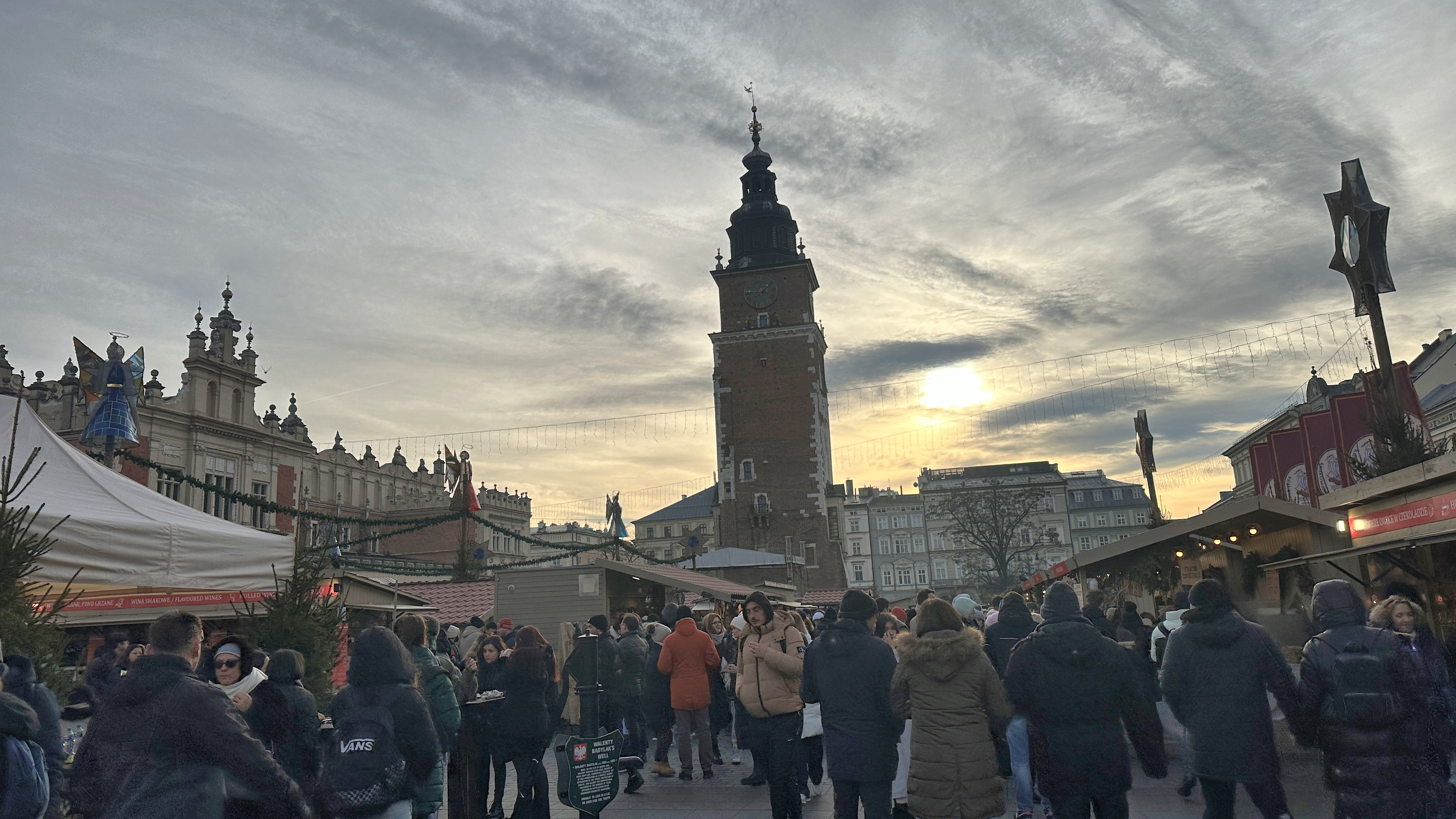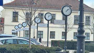 時計の下に都市名が入っている。一番手前がクラクフだ。 |