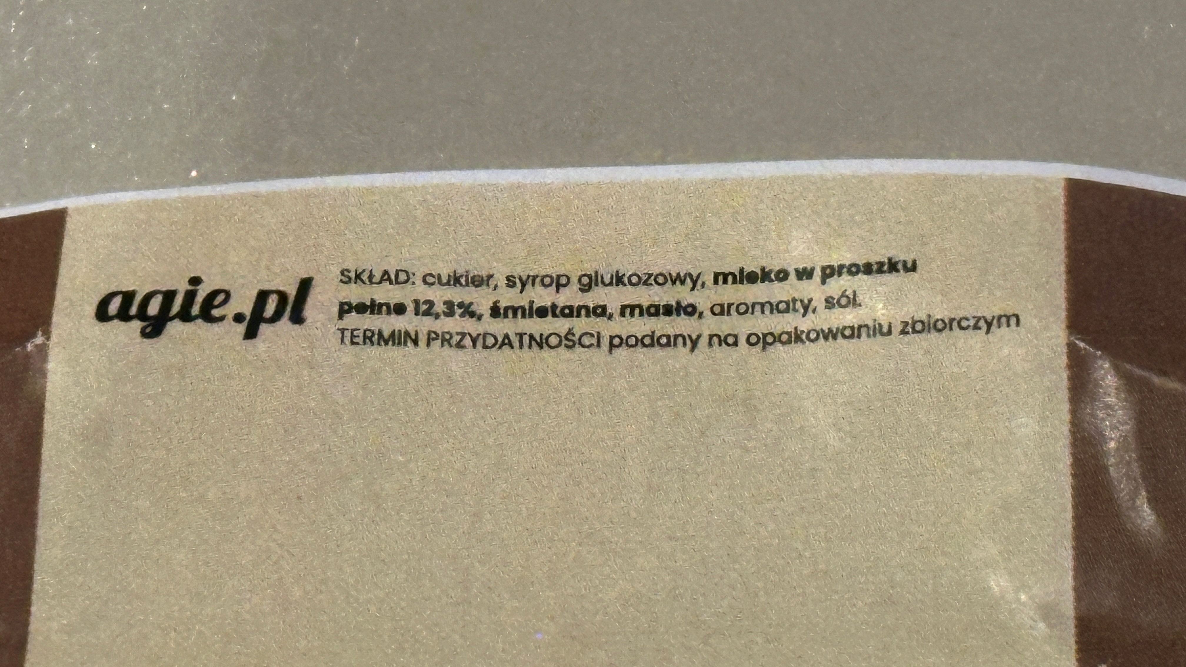 「原材料:砂糖、グルコースシロップ、粉乳(12.3%)、クリーム、バター、香料、食塩。賞味期限はパッケージに記載されています。」