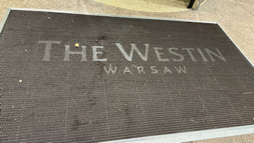 | ホテルはザ・ウエスティン・ワルシャワ。の玄関マットだ。これを撮影したということは、目線が下向きで疲れているということだ。 | ![]() |