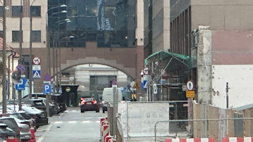 ホテルそばの大きな通りを越えて奥(北側)にトンネルが見えた。これは企業オフィスビルの「アトリウムプラザSp.o.o.」の建物に設けられたトンネルだ。 |