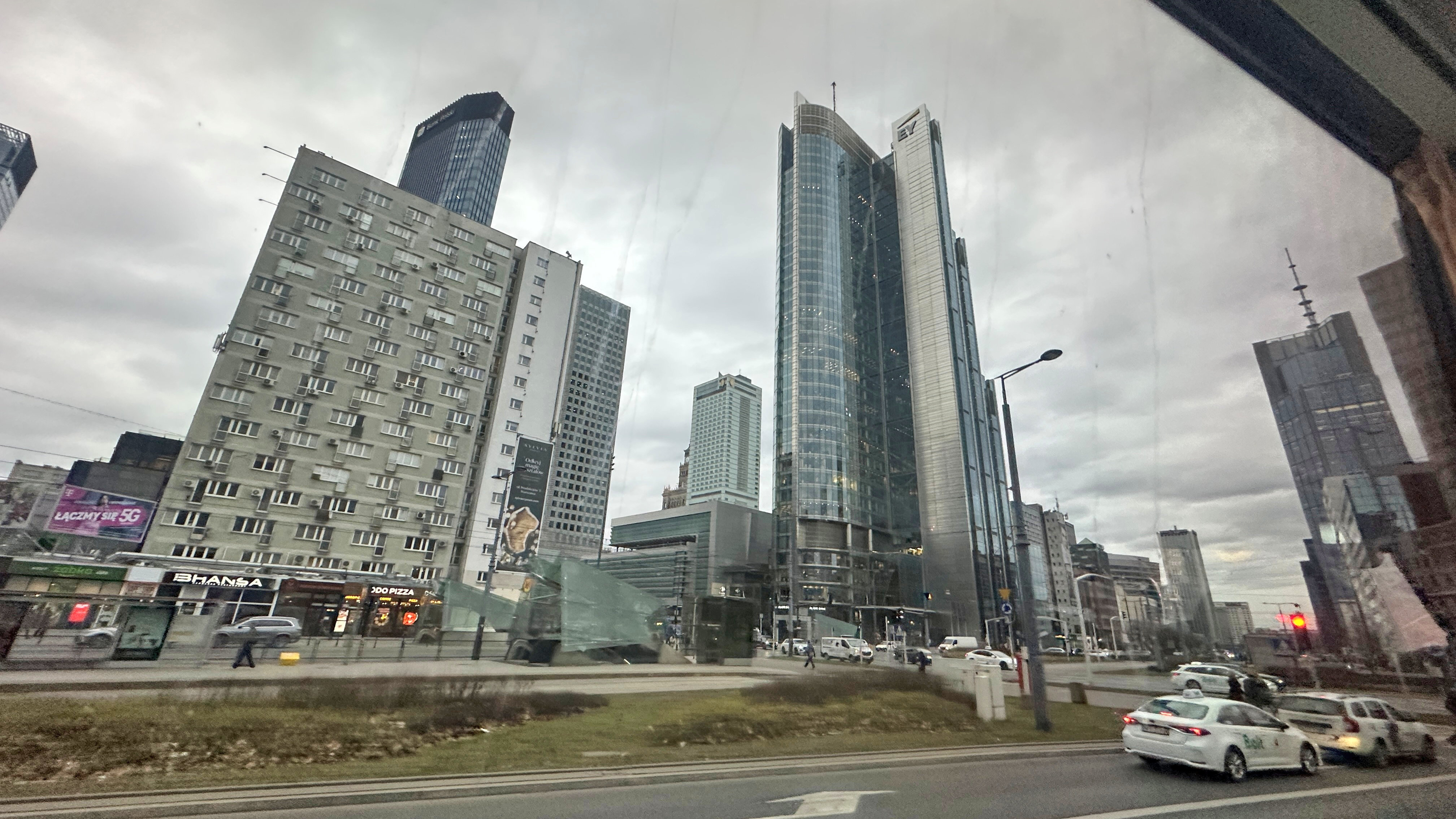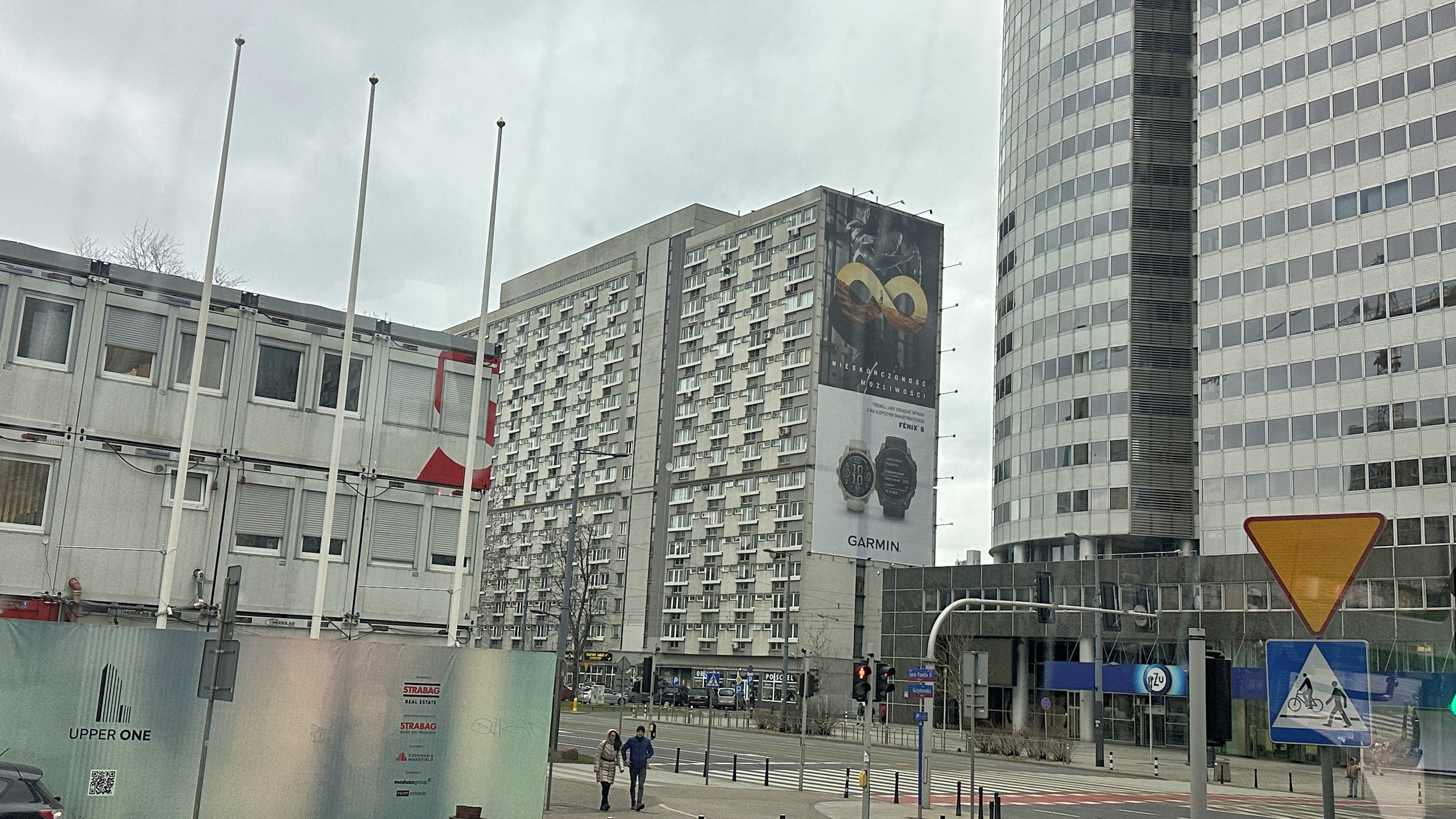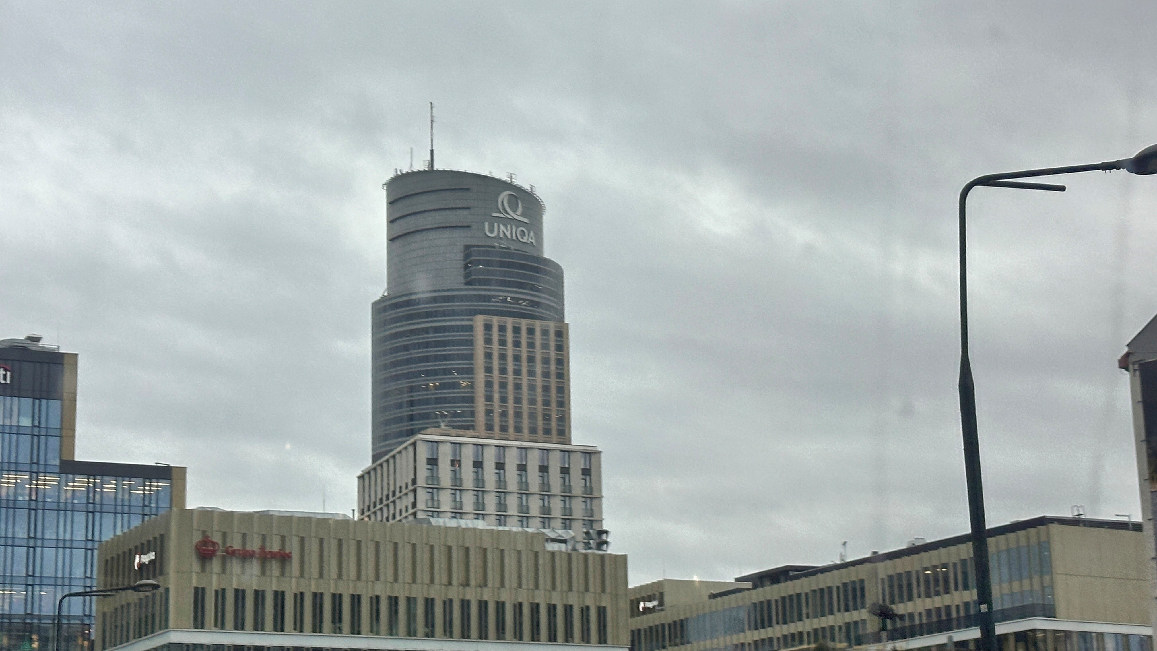 周囲にも建物があるからそんなに高く見えないが、かなり高い建物だ。ポーランドではこのところ高層建築ビルがたくさん建てられたそうだ。 |