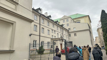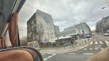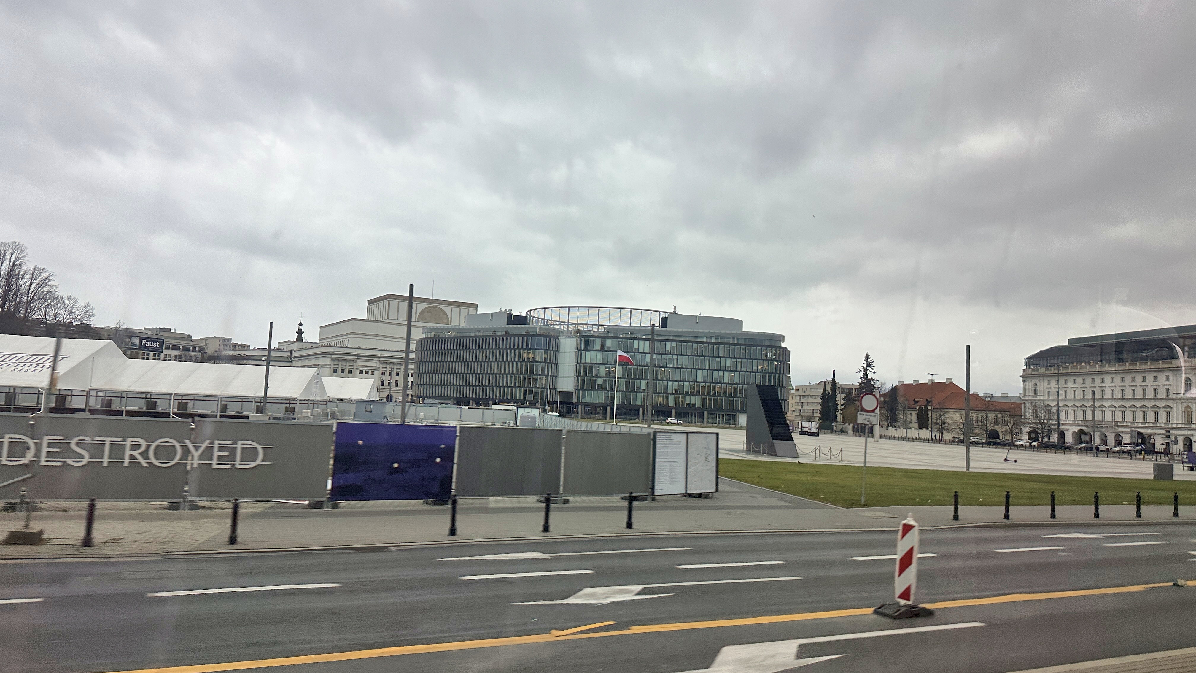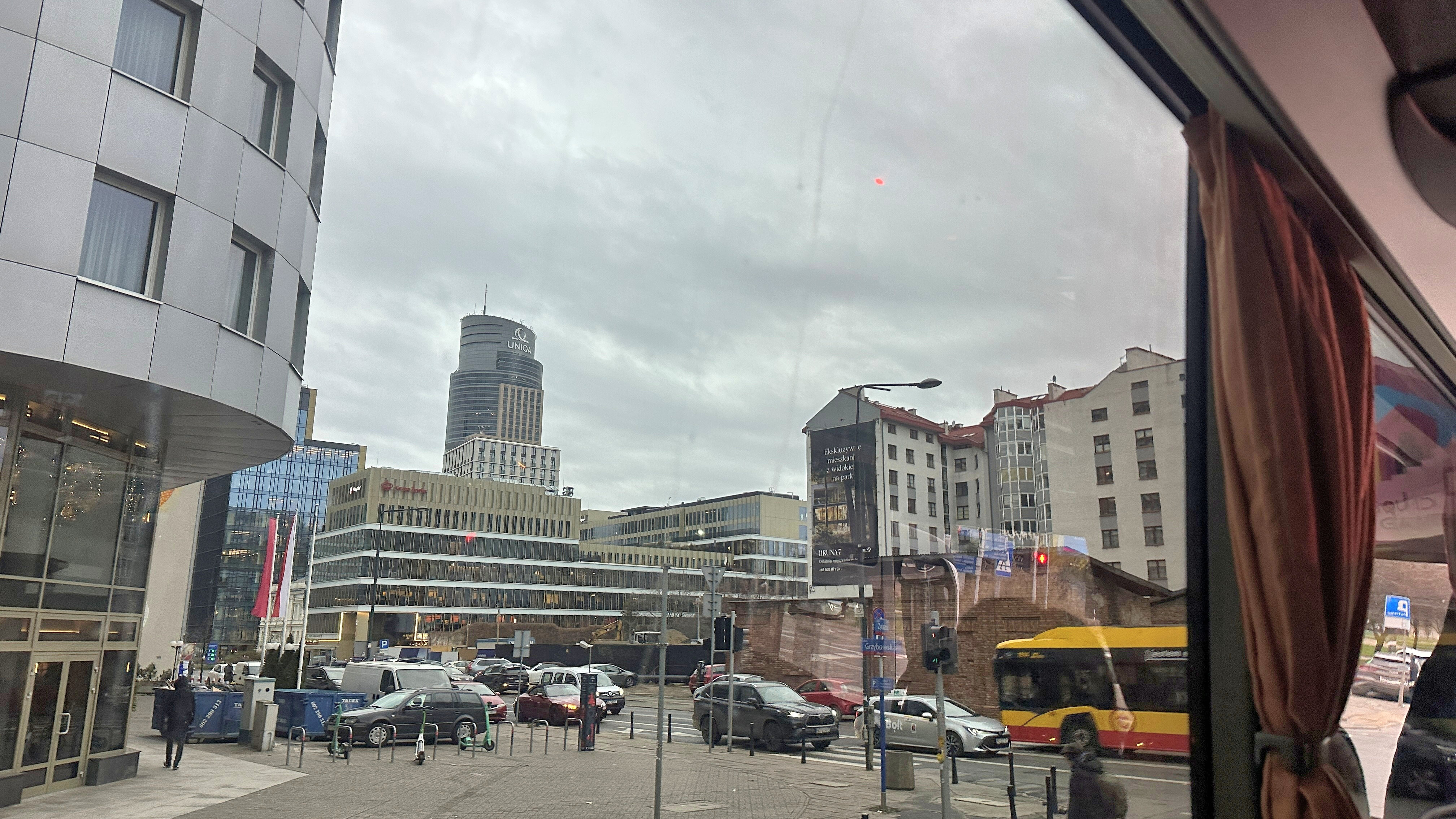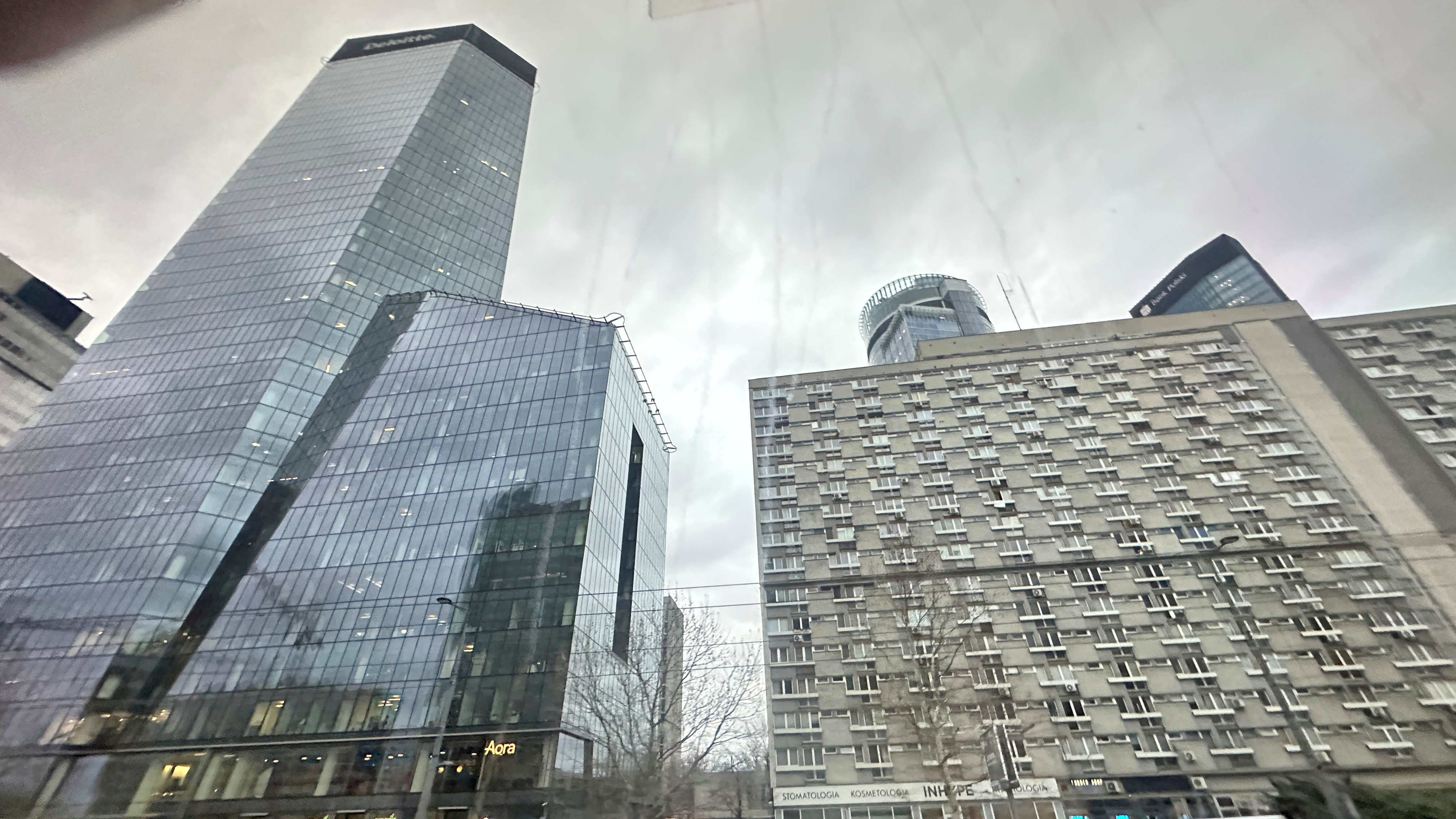 周囲にも建物があるからそんなに高く見えないが、かなり高い建物だ。ポーランドではこのところ高層建築ビルがたくさん建てられたそうだ。 |