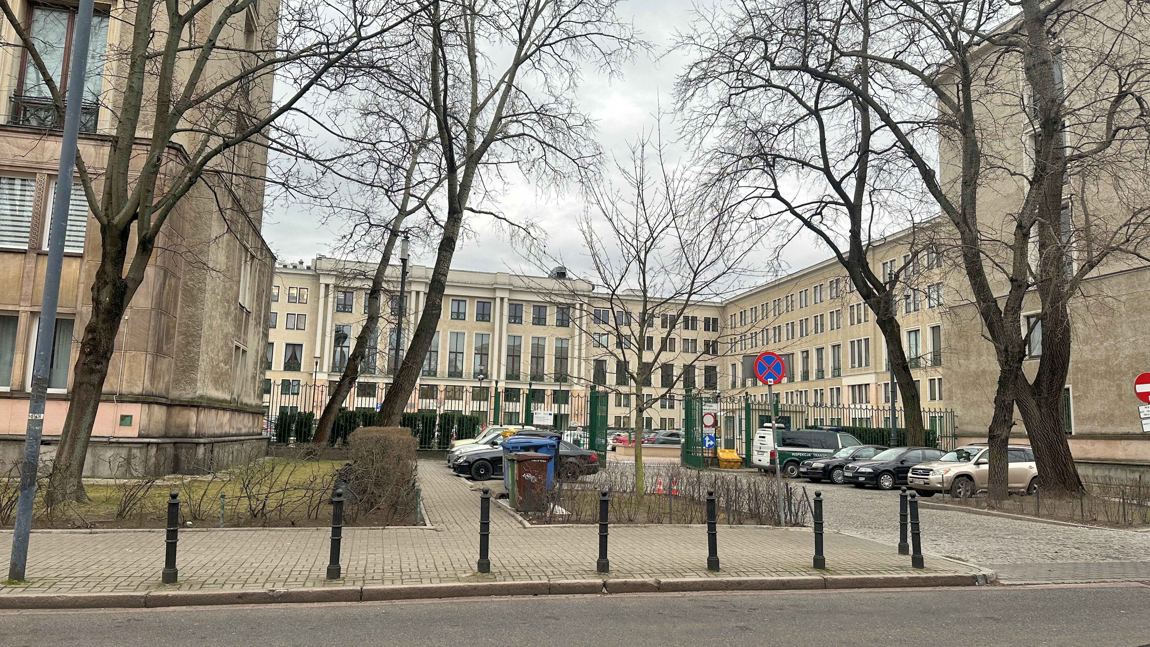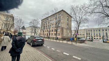正面に見えるのは「ワルシャワ駐屯地司令部」の建物である。 |