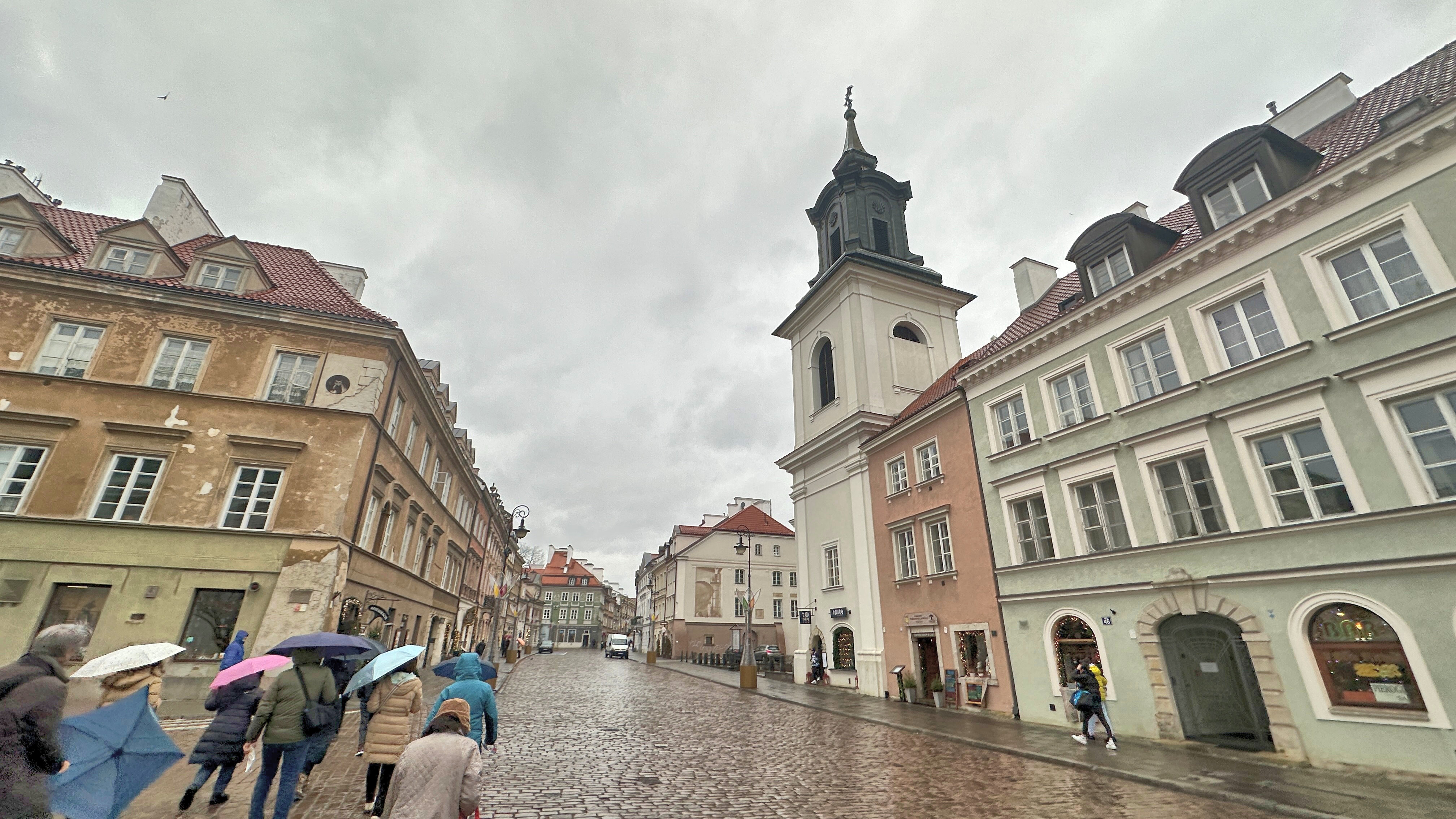 左側に見えるツートンカラーの建物は、史跡「18世紀のロココ様式の長屋」だ。 |
