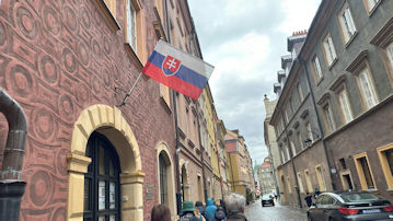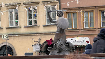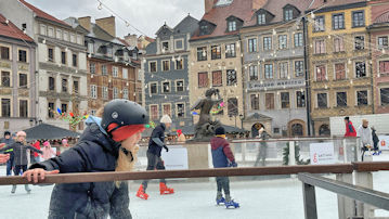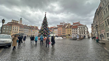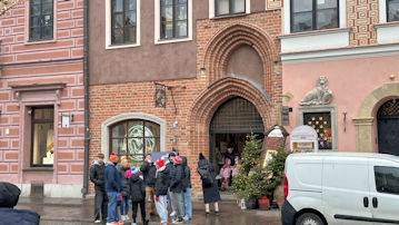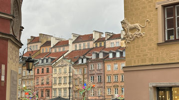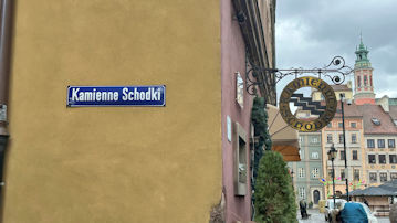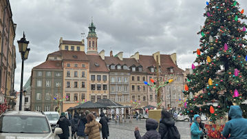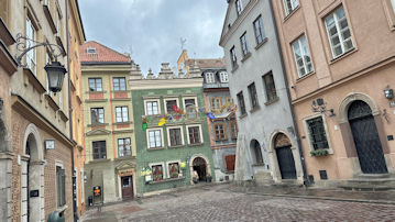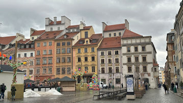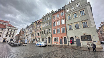 右端の建物は史跡で「ルネッサンス様式の家「ファルキェヴィチフスカ」」という。一つ置いても緑色の建物では「ワルシャワ博物館の特別展」が開かれている。左から2番目は「クレメンス邸」、左端には「ワルシャワ歴史博物館」がある。 |