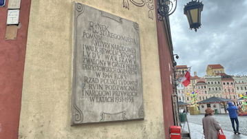 「Gゴールドタウン・マーケット広場記念碑 ワルシャワ・レフトバディフの国民的英雄と革命闘争を記念する記念碑。1944年にファシストOKVによってグリヴジで破壊された。1951年から1953年にかけて、ワルシャワ・レフトバディフのポーランド政府によって再建され、国民に返還された。」 |