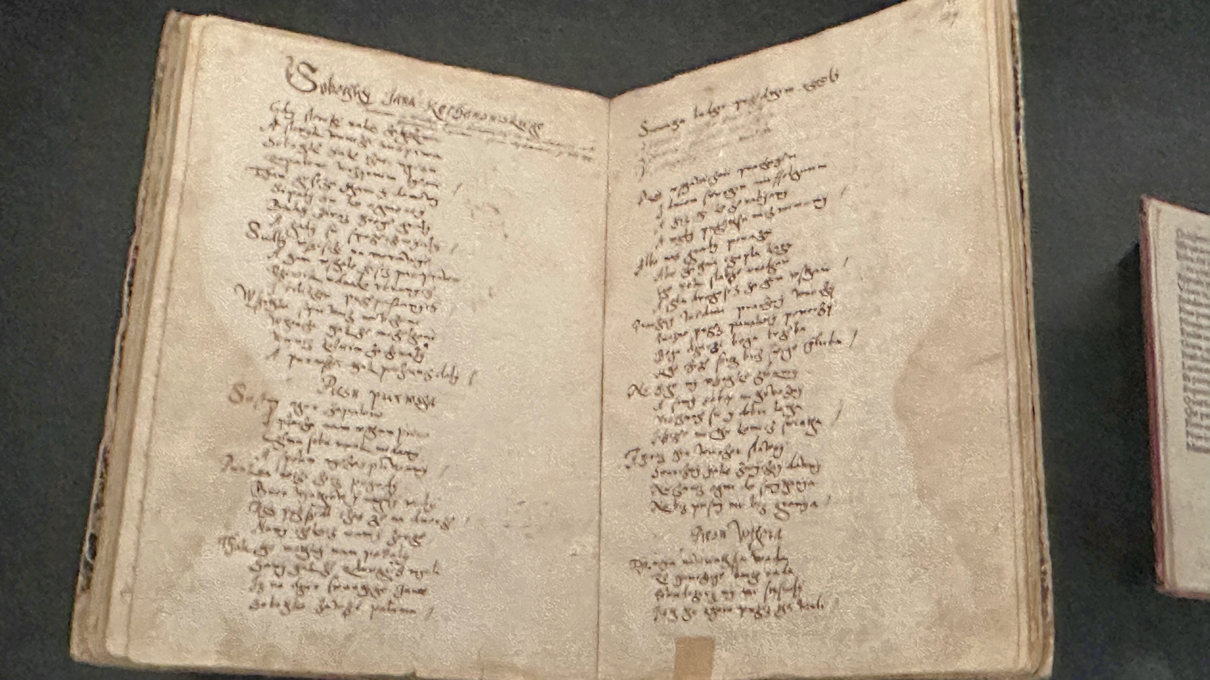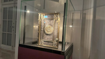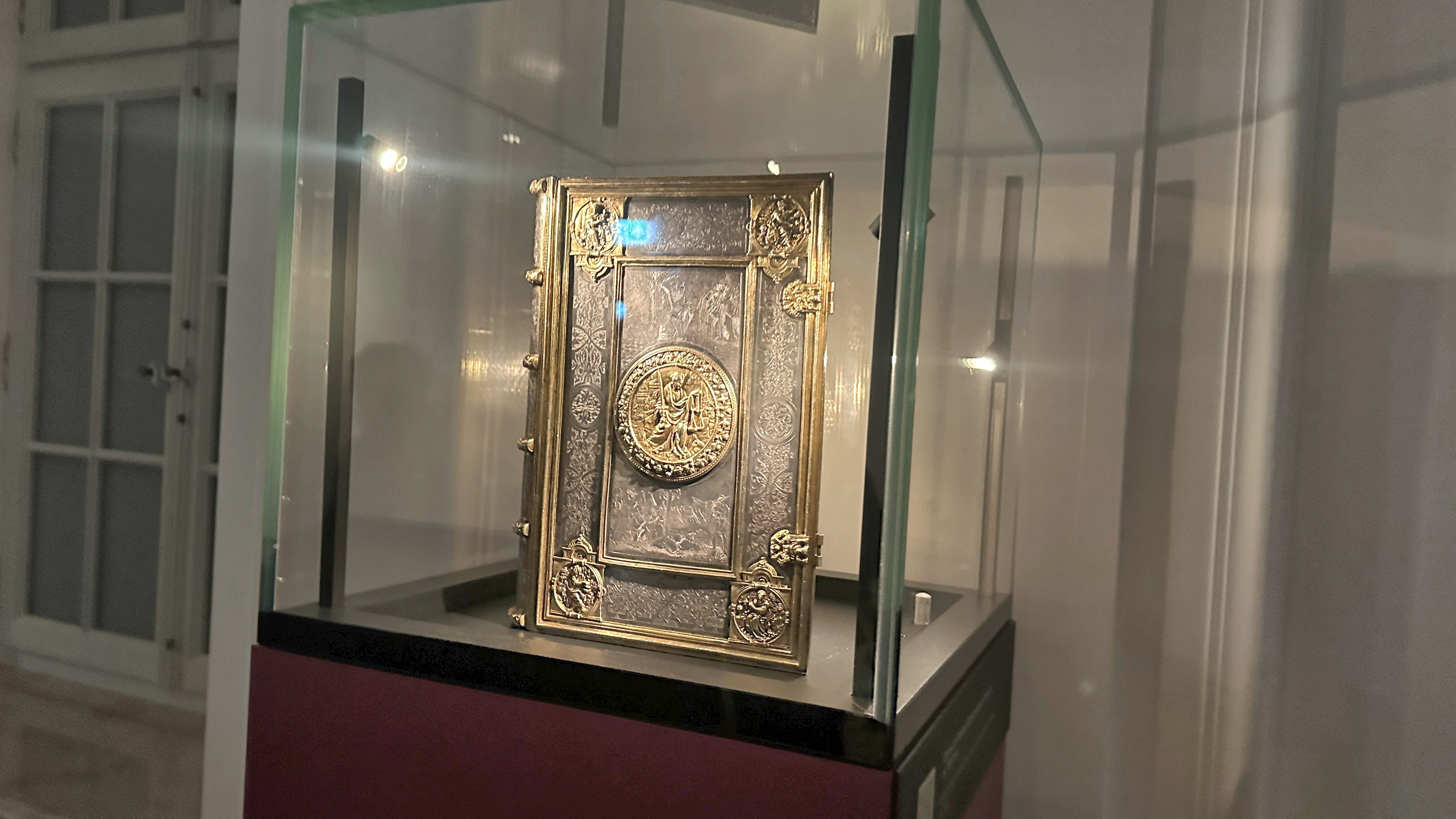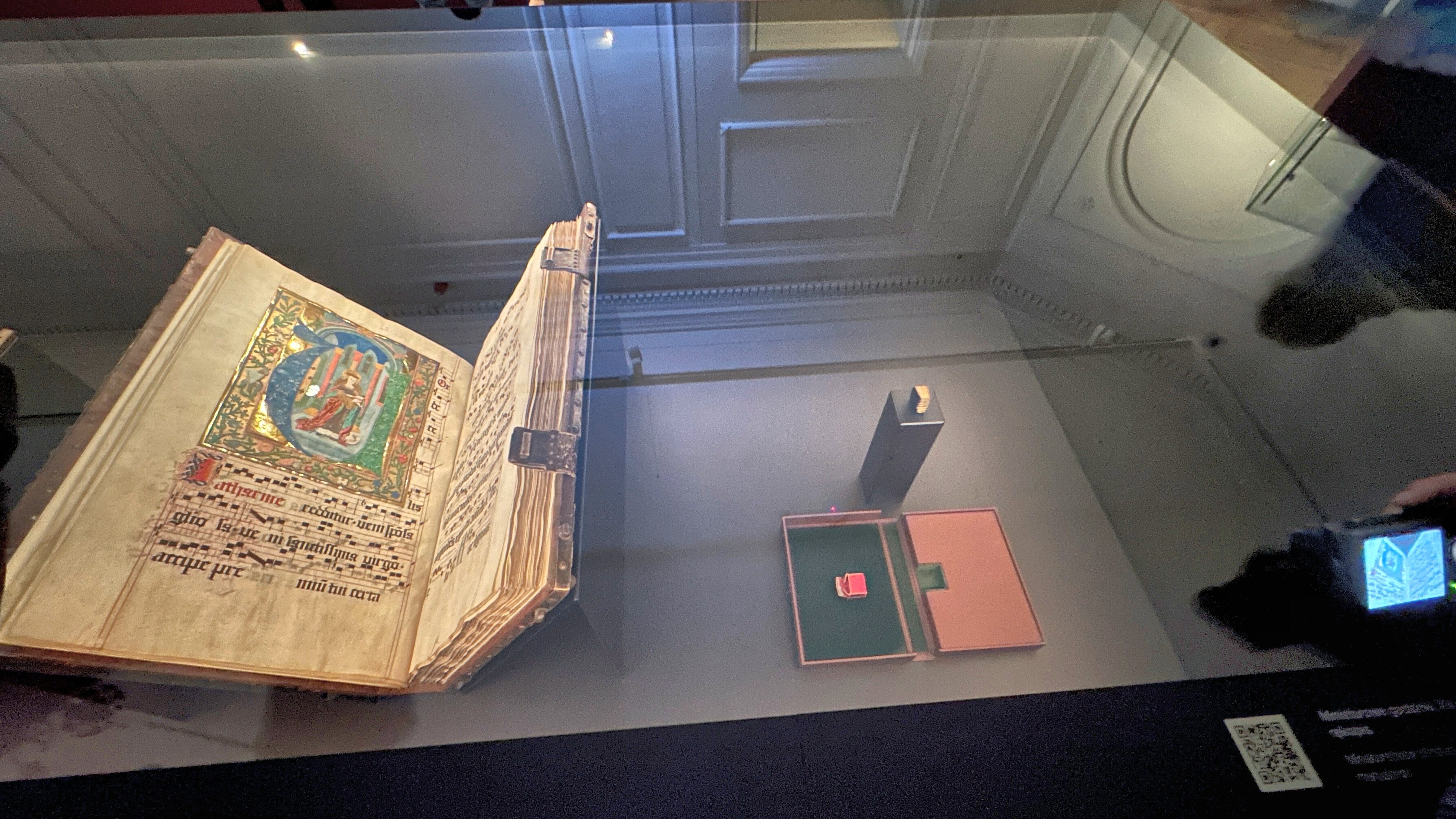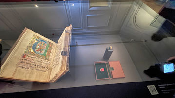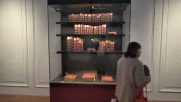 書物の形での展示だが、中をめくって見ることができない。のは残念である。 |