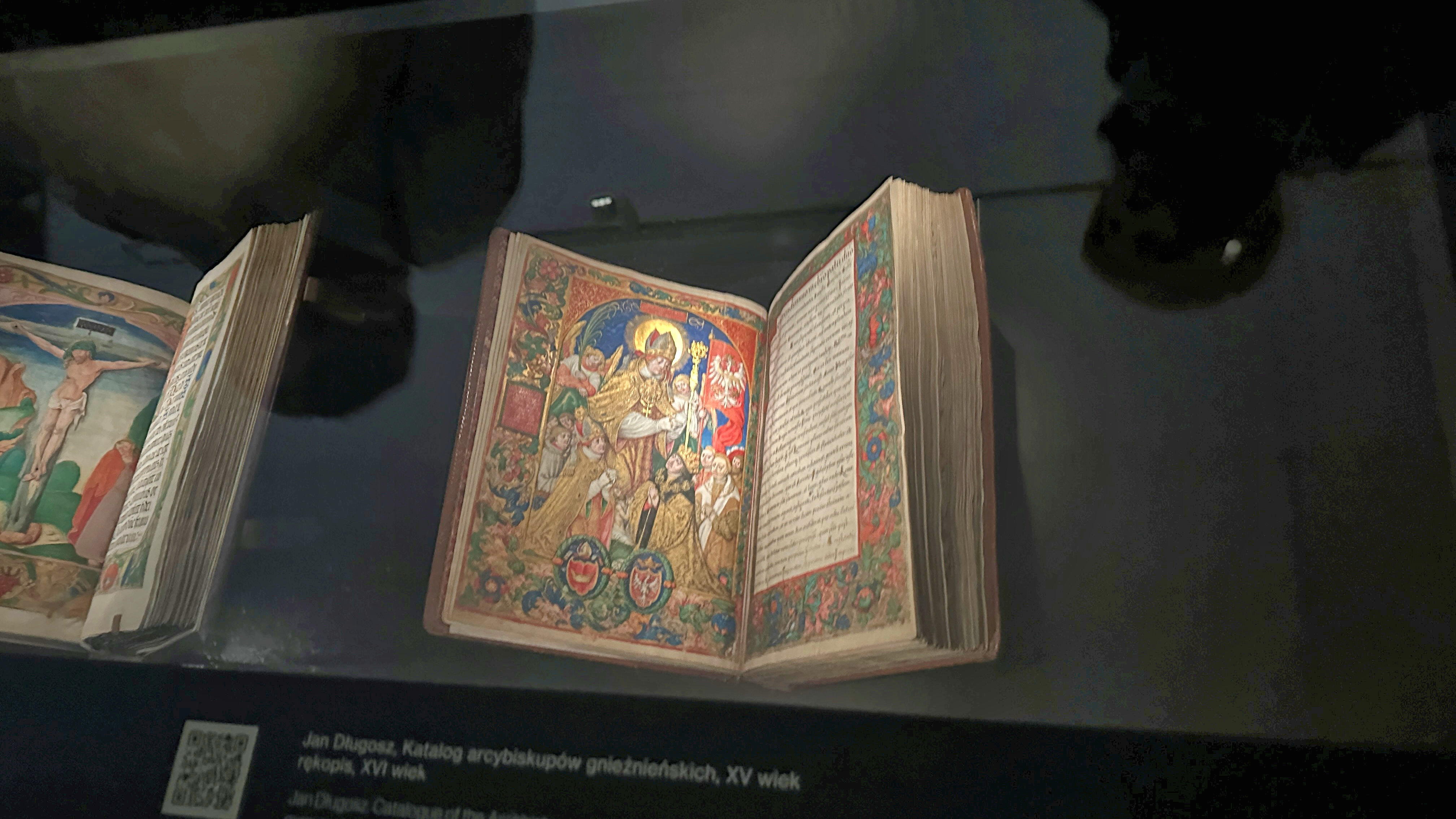 | 書物の横に明るい展示が。 |