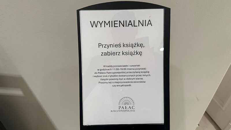 本は良好な状態のものを使用してください。辞書や百科事典の持ち込みはご遠慮ください。 共和国宮殿」 |