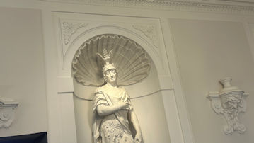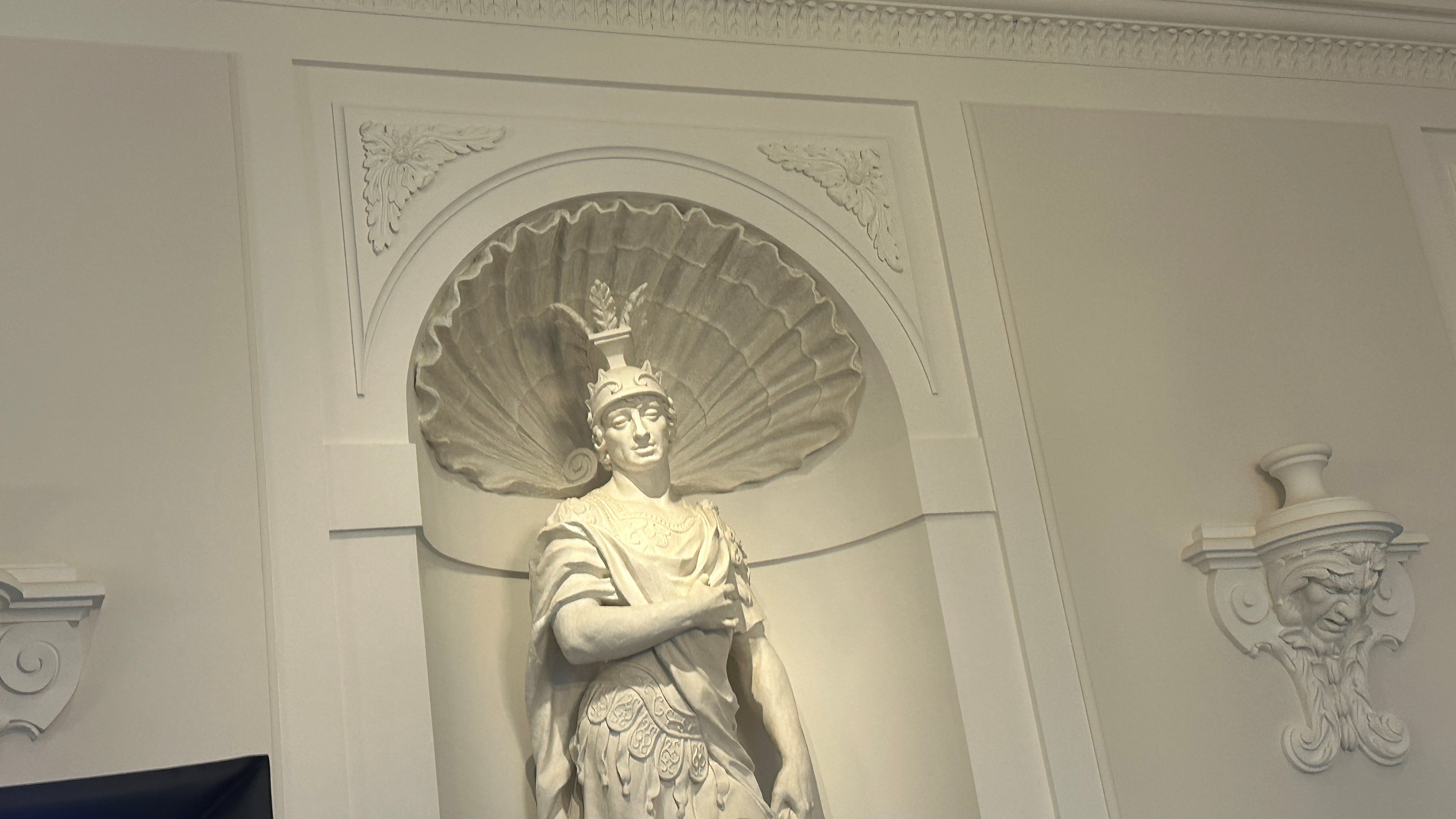 頭上にのホタテのような意匠があるのが気になる。これはシェルニッチとよばれる貝殻モチーフである。