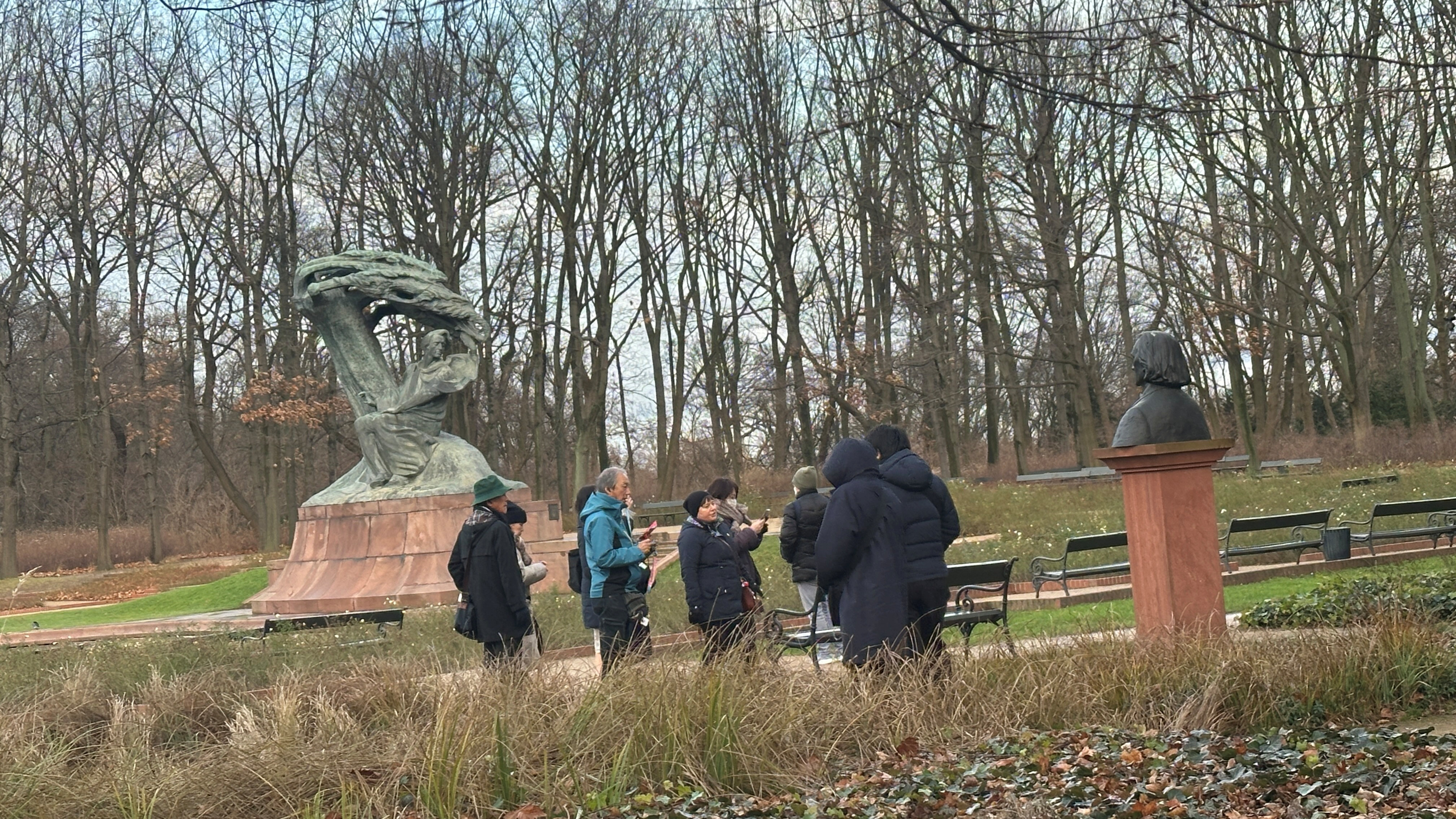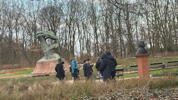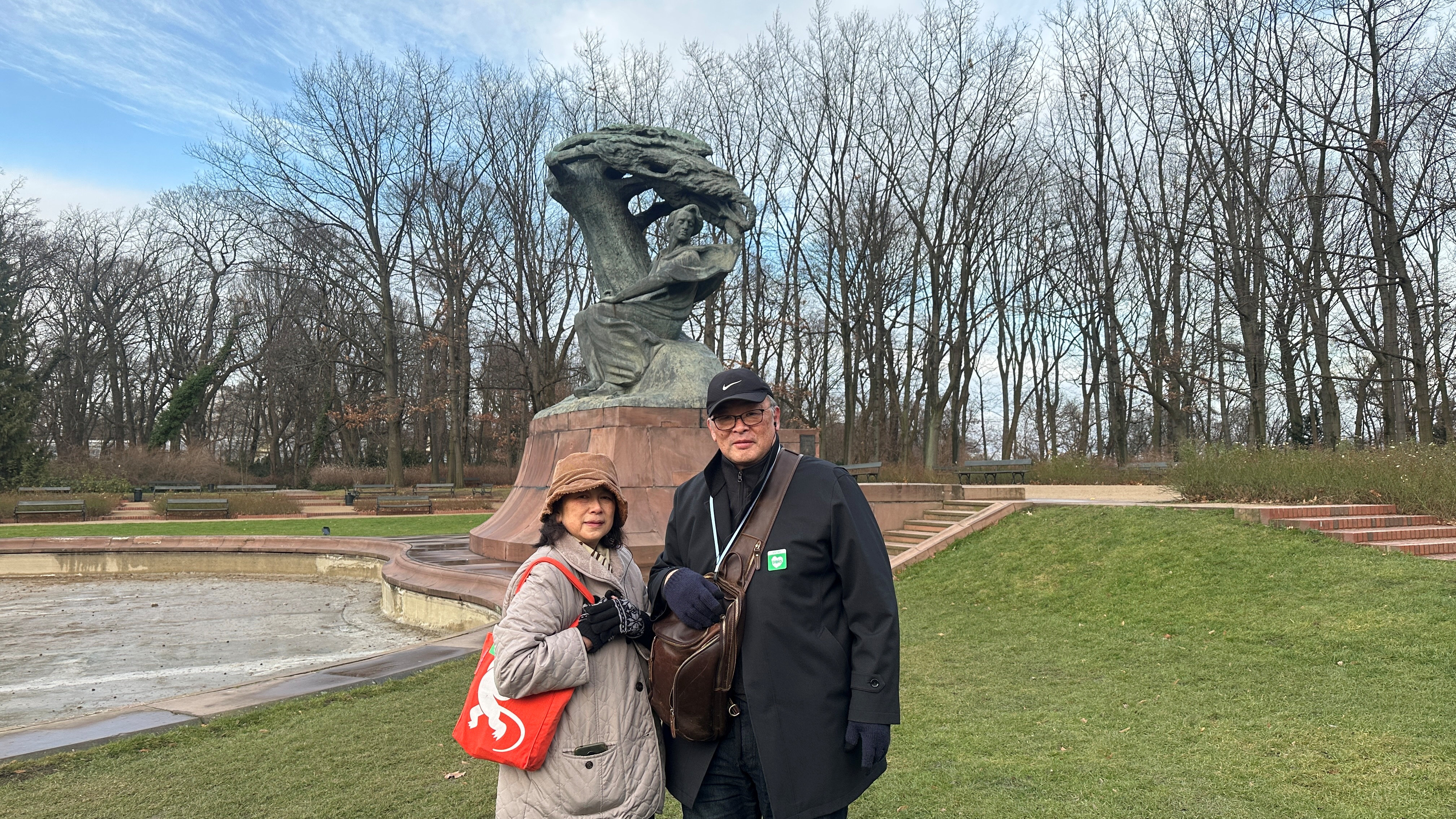 ショパン像の前で、ゆきたんくとのりたん。 |
