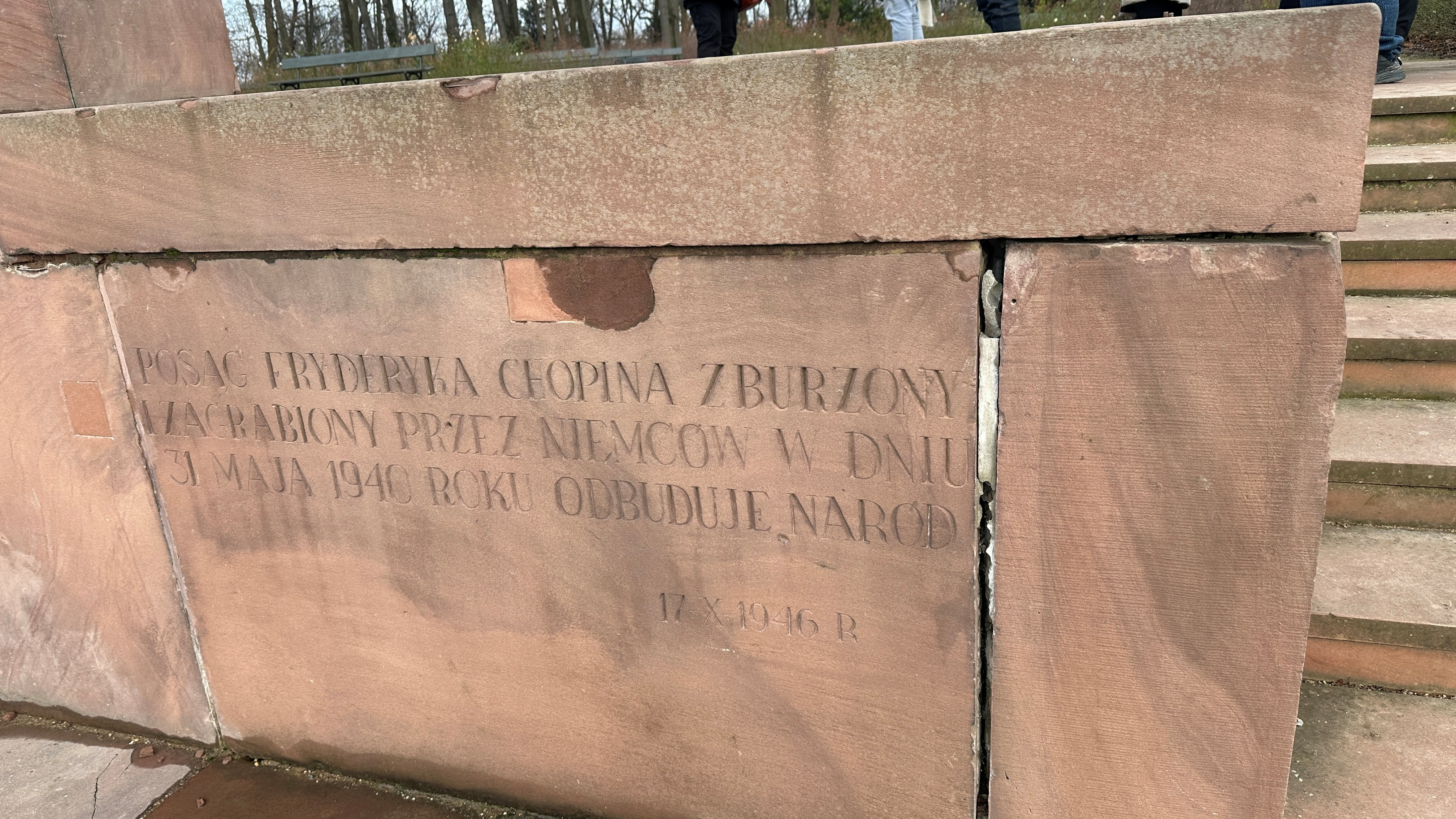 「1940年5月31日にドイツ軍によって破壊されたフレデリック・ショパン像は、国家の再建を担うだろう。」とある。 |