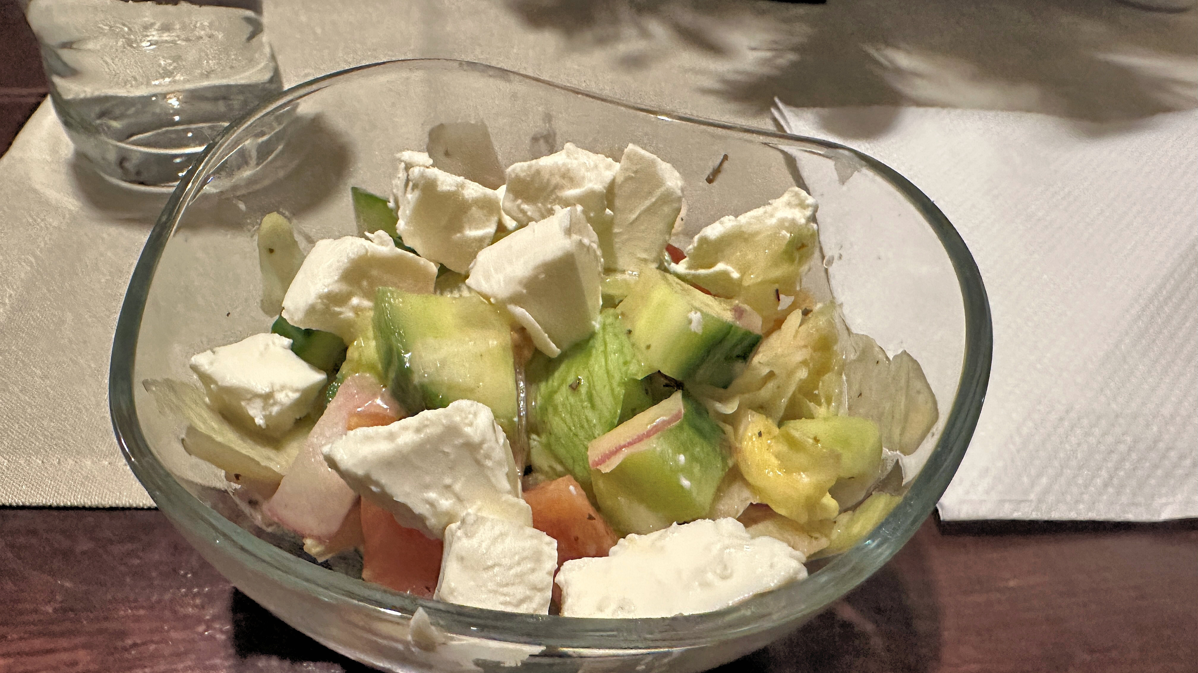 | チェダーチーズ、アボカド、きゅうりなどの野菜が入ったサラダ。 |